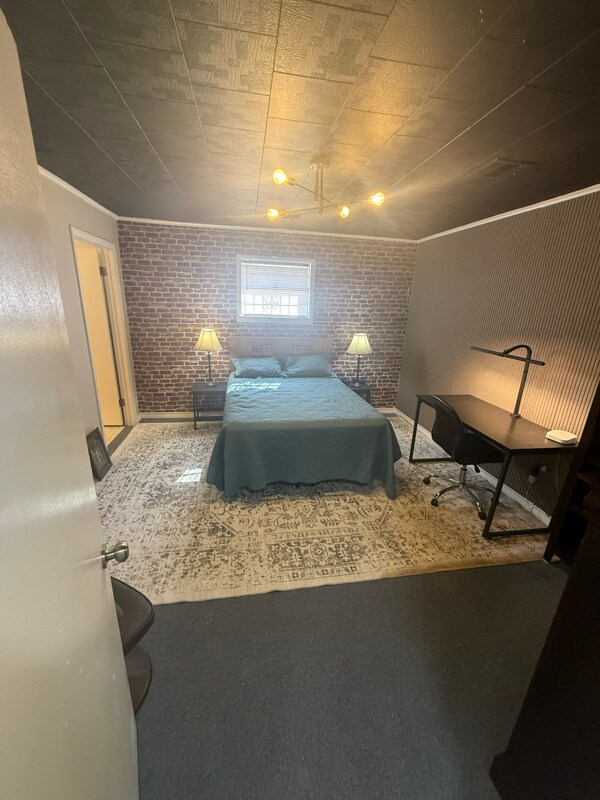 Property Id: 2179777 Fully furnished and all bills paid including internet. Two bedrooms, each with an attached bathroom. Large bedrooms, spacious living room, kitchen and dining area. Laundry room with washer and dryer. Private entrance. Ground level. Secluded in the back of a commercial property in downtown Okmulgee. Shorter lease terms available for additional cost. 3-month lease $1600 per month. Month to month lease $2000 per month.