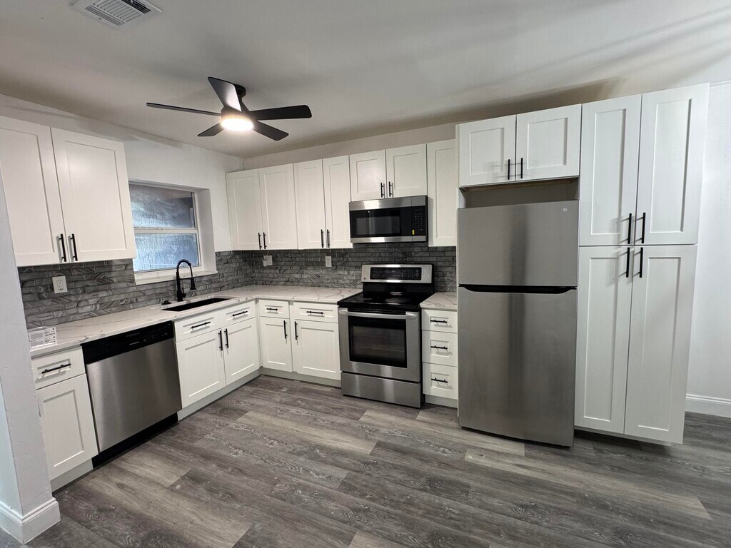 Stunningly Renovated 3-Bedroom, 2-Bath Ready To Move-in duplex in BOYNTON HEIGHTS. Walking distant to the library and close to beach & No HOA!!! Welcome to this rarely available and elegantly updated 3-bedroom, 2-full-bath duplex with masters bedroom located in the quiet neighborhood, From the moment you step inside, you'll appreciate the thoughtful renovations and spacious layout designed for both comfort and style. The heart of the home is the open-concept kitchen, featuring a stunning quartz countertop, sleek stainless-steel appliances, and ample cabinet space. The main living area is finished with vinyl flooring, beautiful lightning, chandelier and all impact windows throughout the home. 3bedroom, 2bath @$2800.