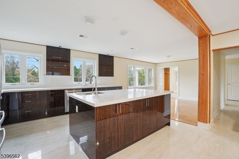 This thoughtfully designed & rebuilt home offers a rare combination of modern style, spacious living & everyday convenience in one of Summit's most desirable neighborhoods. With 6 bedrooms and 5 full bathrooms, this home truly checks all the boxes. The bright, open-concept kitchen features high-end finishes and flows seamlessly into the dining room and family room. The layout is ideal for entertaining or relaxed daily living. A gas fireplace adds warmth to the main living area. A first-floor bedroom & full bath provide flexible space for guests, an office, or a playroom. Upstairs, the expansive primary suite offers two walk-in closets, generous storage, & a spa-inspired ensuite bath. The second floor also includes an additional bedroom, a modern hall bath, & a convenient laundry room. Another bedroom on this level features its own private bath & walk-in closet. The third floor offers two spacious bedrooms that can easily serve as an office, exercise room, or playroom, along with a full bath.The lower level is unfinished but open, & ideal for recreation or storage. Additional highlights include an attached 2-car garage, mudroom, pantry, living room with sliders to the deck, & beautifully landscaped grounds. A private road provides access to the driveway. The property offers convenient access to Summit's vibrant downtown, train station, houses of worship, shopping, major highways, airports and restaurants. This home delivers the perfect blend of luxury, comfort & convenience.