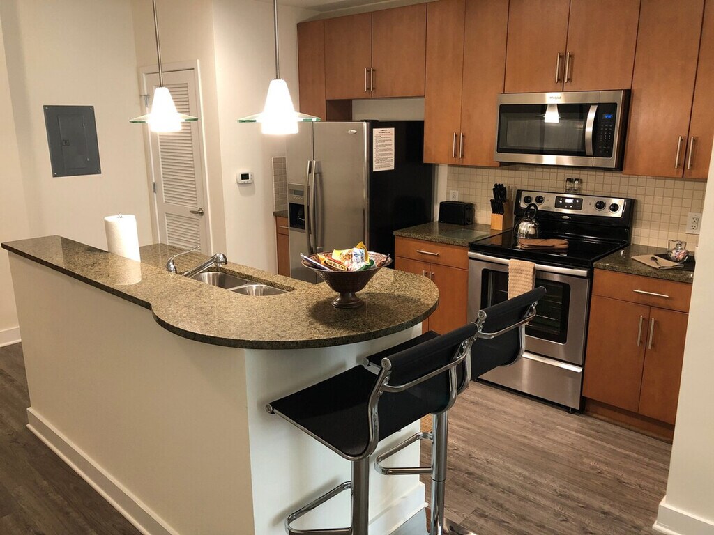 Feel at home in this spectacular 1-bedroom apartment home centrally located in Uptown Charlotte, overlooking the property's outdoor pool and directly across the street from Romare Bearden Park. This apartment is well-appointed with all the furnishings, linens, and kitchenware you may need, along with a Netflix streaming service included. The property has beautiful amenities including a fitness center, outdoor pool, resident lounge, and business center. Free parking is available in the garage. Pets are permitted for a fee of $8.00 per day, not to exceed $300.00. This apartment is centrally located in Uptown Charlotte. [SI]