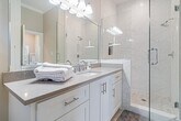 Make this 3 bed,3.5 bath coastal retreat with 2,000 sq ft of open-concept living your home. Each bedroom has a private ensuite. The island kitchen features quartz counters,gas range & opens to a bright living area with a stone fireplace. Relax on the large covered balcony or enjoy 2,234 sq ft of covered space below—ideal for parking,BBQs & entertaining. Oversized garage fits a small boat or jet skis & includes smart vehicle outlet. Primary suite offers a spa-like bath with soaking tub,walk-in shower & dual vanities. Exterior pest system eliminates mosquitoes,spiders & more. High ceilings,modern lighting & neutral finishes throughout. Golf cart community that is just minutes from Kemah Boardwalk,NASA & Medical Center. Coastal living at its finest! MLS# 10818930