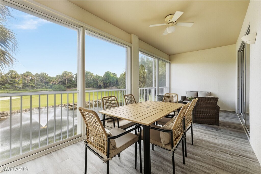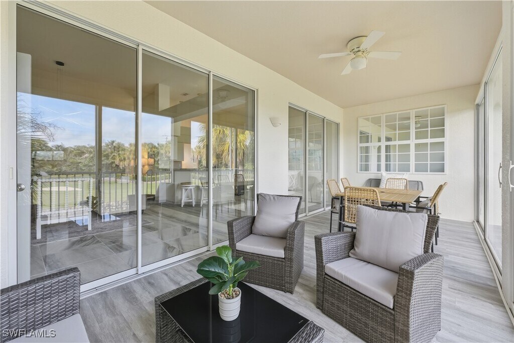 Available October-December 2025. Spacious 2nd floor,3br/2ba condo with attached one car garage located in Middleburg at Stonebridge Country Club. Enjoy morning coffee or late night drinks on an enclosed lanai overlooking the 11th green. Master bedroom has a king size bed,walk-in closets,dual vanity,shower and a separate tub. First guest bedroom offers a queen size bed and a spacious closet. The 2nd guest bedroom has a bunk bed and twin size bed and an additional closet. Bonus room located off the kitchen can be used as an office or study with a pull out couch. Stonebridge is a Gated Bundled Golf Country Club Community. Amenities include a brand new clubhouse,3 restaurants (Grill Room,Dining Room with a terrace and poolside Bistro) 5 lighted har-tru tennis courts,Fitness Center,community pool and spa. Located only 3 miles from pristine beaches of the Gulf of Mexico. Close to Mercato,Waterside shops and fine dining. OPTIONAL GOLF MEMBERSHIP TRANSFER. NO PETS per HOA