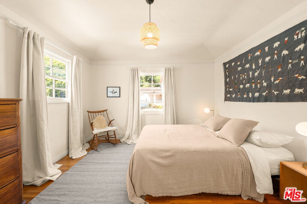 Located in Silver Lake's coveted Moreno Highlands, this fully furnished 3BR/2BA 2,282 sq.ft. residence offers hillside and lake views, and is close to the Reservoir Trail and Dog Park. The home's main level features a step-down living room with a fireplace that flows into a private dining area, both with French sliding doors that open to a spacious patio for al fresco dining and entertaining. Also on this level are a galley kitchen with a dining nook, a versatile bonus space with heated floors, and a full bathroom. A second floor landing opens to 3 light-filled bedrooms (2 with lake views). The primary bedroom includes a walk-in closet and a balcony that overlooks the reservoir. A full bathroom serves the upper level's bedrooms. The house's additional amenities include a laundry area (accessible from both inside and outside), a separate storage structure (suitable for work or play), and a generous 8,352 sq.ft. flat lot with a resort-style saltwater pool (with cover). Driveway parking (uncovered) and plenty of street parking. Ivanhoe School District. This chic, furnished residence offers boutique hotel-style comfort and easy connectivity to all the area has to offer. Minimum 760 FICO. Monthly Income: 3x rent amount. MLS# 25586581