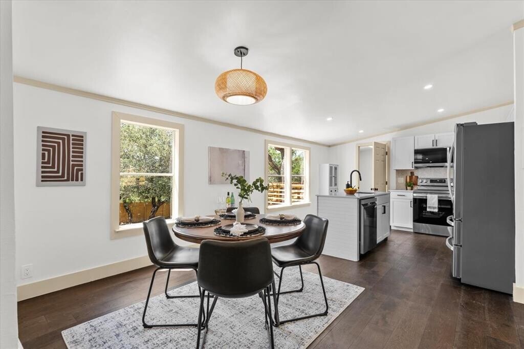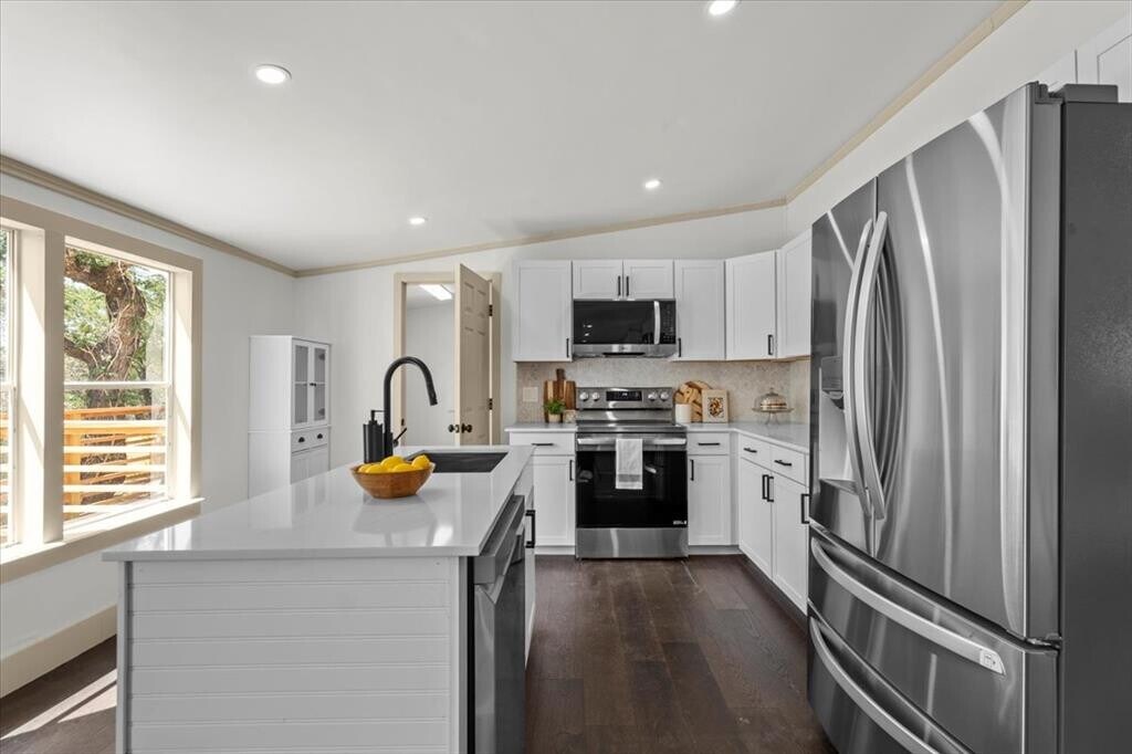 Nestled in Texas Hill Country, where Lake Travis’s shimmering waters meet rolling hills, is a fully renovated home. A move-in-ready haven blending modern luxury with lakeside charm, ideal for families or retirees seeking affordability, style, and serene living. Curb appeal shines with fresh paint, a new garage door, and updated electrical/plumbing for efficiency and safety. A new expansive deck wraps the home, perfect for dining, relaxing, or stargazing over a sloped backyard ready for gardens, fire pits, or custom landscaping. Inside, new floors flow through open-concept spaces bathed in natural light. The gourmet kitchen dazzles with sleek countertops, new cabinetry, and state-of-the-art stainless-steel appliances. Spa-like bathrooms feature new vanities, fixtures, and elegant tiling; the primary suite offers an en-suite bath and generous closets, while secondary bedrooms suit guests or home offices. New HVAC units ensure year-round comfort in Texas’s varied climate.In Bar-K Ranches, Lago Vista’s POA unlocks exclusive waterfront parks, boat launches, marinas, pools, tennis courts, a fitness center, and the scenic 18-hole Lago Vista Golf Course amid oak-studded hills. Arkansas Bend Park’s hiking and swimming, Pace Bend Park’s biking and camping trails, or Balcones Canyonlands’ wildlife tours. Savor Flat Creek Winery tastings, Hippie Hollow’s unique beach, disc golf, pickleball, or boating. Just 30-45 minutes from Austin’s vibrant dining, music, and culture, Lago Vista blends small-town charm with top-rated Lago Vista ISD schools, lively community events like farmers’ markets, and a thriving real estate market. This renovated gem is more than a home—it’s a gateway to lakefront sunsets, outdoor adventures, and neighborly warmth. Don’t miss your chance to own this Hill Country paradise; schedule a viewing today.