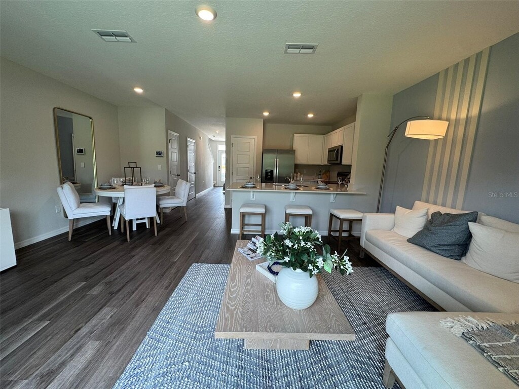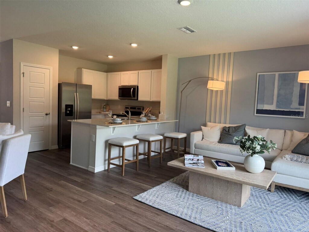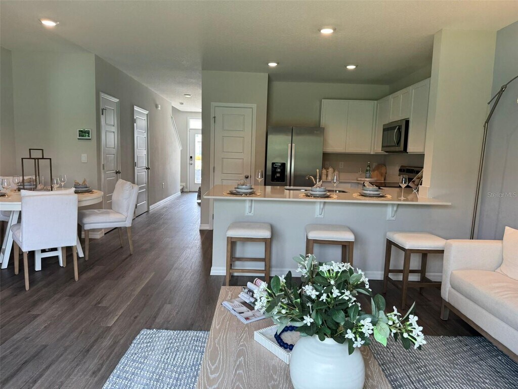'Please note that some photos are of the model home, meant to inspire you with ideas for decorating and imagining the possibilities of your future home.'Introducing The Pearson: Where Modern Elegance Meets Everyday Comfort Located in Danbury, Davenport, Florida, The Pearson is a beautifully designed townhouse that blends contemporary style with practical living-offering you the best of both worlds in a vibrant, welcoming community. Step inside through the private one-car garage and enter a thoughtfully crafted 1,463-square-foot home that radiates warmth and sophistication. At the heart of the residence is a spacious, light-filled living room-perfect for entertaining guests or simply enjoying a quiet evening at home. Its open layout and natural flow easily adapt to your lifestyle. Just off the living area, the dining room and gourmet kitchen await. Designed with the modern chef in mind, the kitchen features sleek cabinetry, high-end stainless-steel appliances, and a stunning central island. Whether you're hosting friends or enjoying casual family meals, this space delivers both style and functionality. Upstairs, three inviting bedrooms offer plenty of space to rest and recharge. The primary suite is your personal retreat, complete with a generous walk-in closet and a luxurious en-suite bathroom featuring dual sinks and a walk-in shower. With 2.5 bathrooms throughout the home, convenience is always close at hand. Like every home in Danbury, The Pearson is built with concrete block construction for added durability and peace of mind. Smart home technology is included, allowing you to manage your home's features remotely from your device-no matter where you are. Experience elevated living in a home where every detail has been designed with your comfort in mind. Welcome to The Pearson-where every day invites you to live life to the fullest.