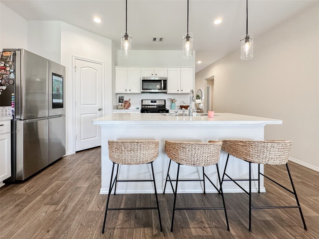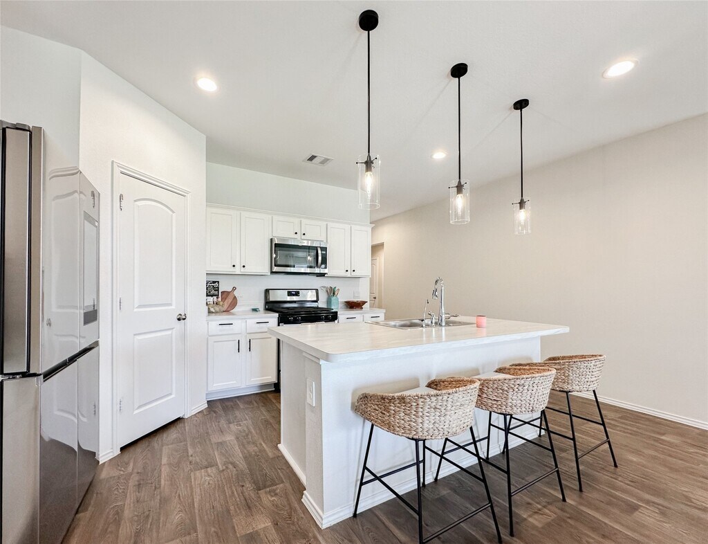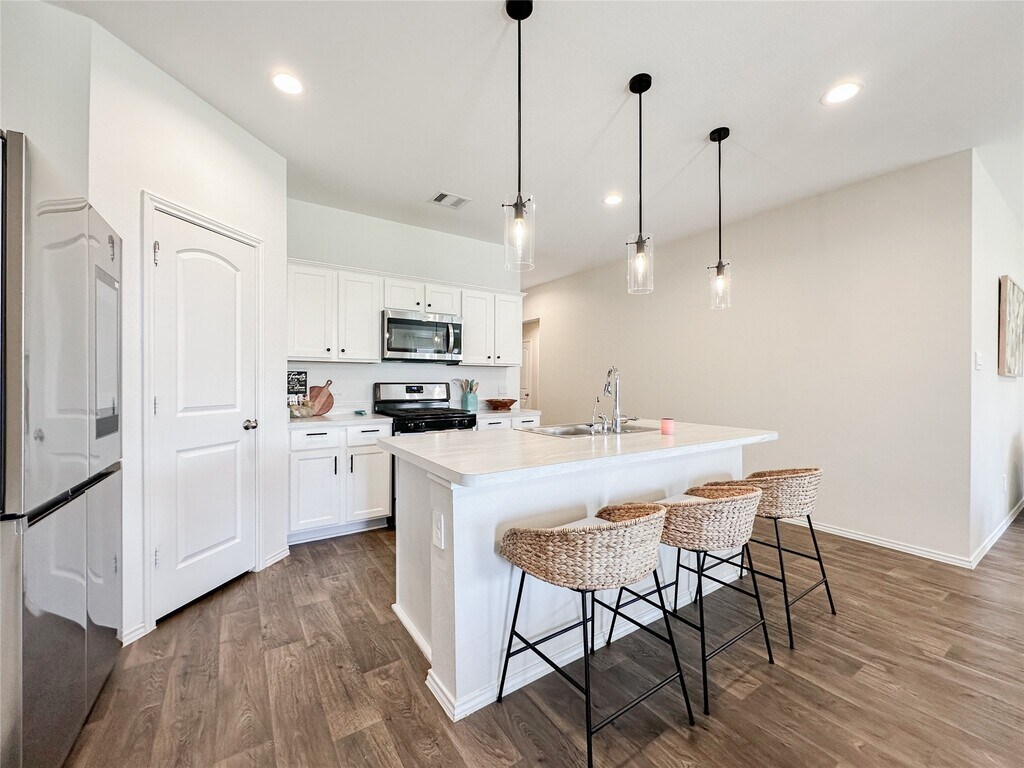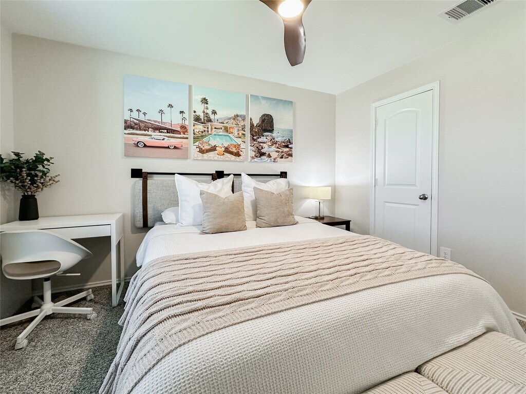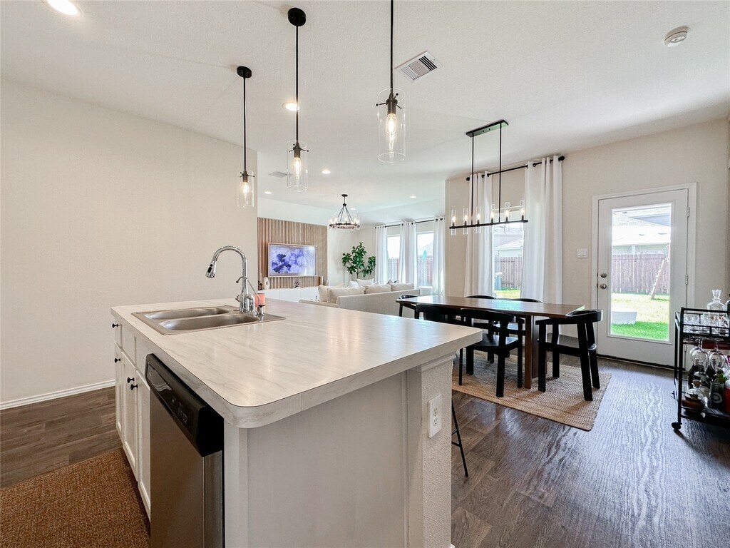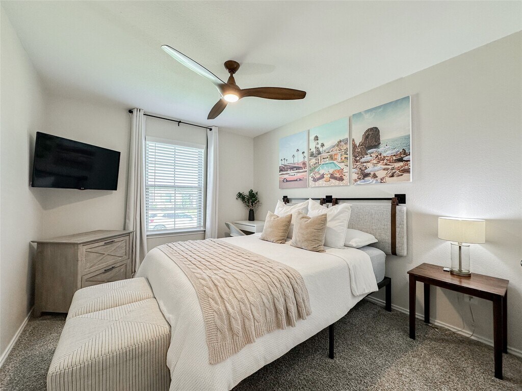 Beautiful and exceptionally well-maintained 3-bedroom,2-bath,offering a bright open layout and modern finishes throughout. The spacious kitchen features a large island,white cabinetry,stainless-steel appliances,pendant lighting,and a seamless flow into the dining and living areas. The living room includes a custom wood accent wall and abundant natural light. The primary suite offers a generous walk-in closet and spa-like bath with oversized shower. Enjoy a large backyard with an upgraded shade canopy,kids’ playground,trampoline area,and plenty of space for outdoor living. The covered patio and clean,manicured yard make this home perfect for relaxation and entertaining. Beautiful entryway,updated lighting,and laminate flooring throughout. Conveniently located near Fry Rd,I-10,and TX-99,and zoned to Katy ISD. Available now. MLS# 33333221