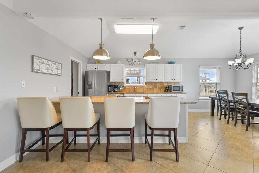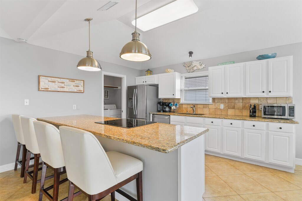 Step into this beautifully updated 3-bedroom,2-bath home featuring an open-concept layout with cathedral ceilings. The spacious kitchen has a large breakfast island with storage and flows into the bright breakfast area with gorgeous beach views. The living area is filled with natural light,with a wall of windows. The primary suite offers a tranquil retreat,while the two large guest rooms provide plenty of space for family and friends. Enjoy coastal living at its finest on the expansive outdoor deck,where you can listen to the soothing sounds of the waves and watch them roll in. The fully fenced yard offers privacy,while the lower-level entertaining space is ideal for gatherings,complete with an outdoor shower. With neighborhood amenities,including a pool,pickleball court,private fishing pier,and boat launch,this home is just a short walk to the beach. Move-in ready and perfectly positioned for a relaxing coastal lifestyle. HVAC/HEAT 2019 Water Heater 2024 MLS# 16873266