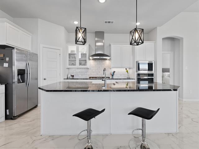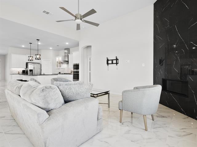 Modern Craftsman inspired newer home on oversized and VERY private lot in Aledo's exclusive Walsh Ranch! Open design floor plan features light AND bright on trend kitchen, walls of windows, high ceilings PLUS home office, game room, and media room providing the perfect upstairs kid's retreat. WALSH amenities include community lake, recreation and fitness centers, neighborhood grocery, walking trails and parks, tennis courts and great community pool! Property also features solar panels making it ultra energy efficient. Acclaimed Aledo ISD!