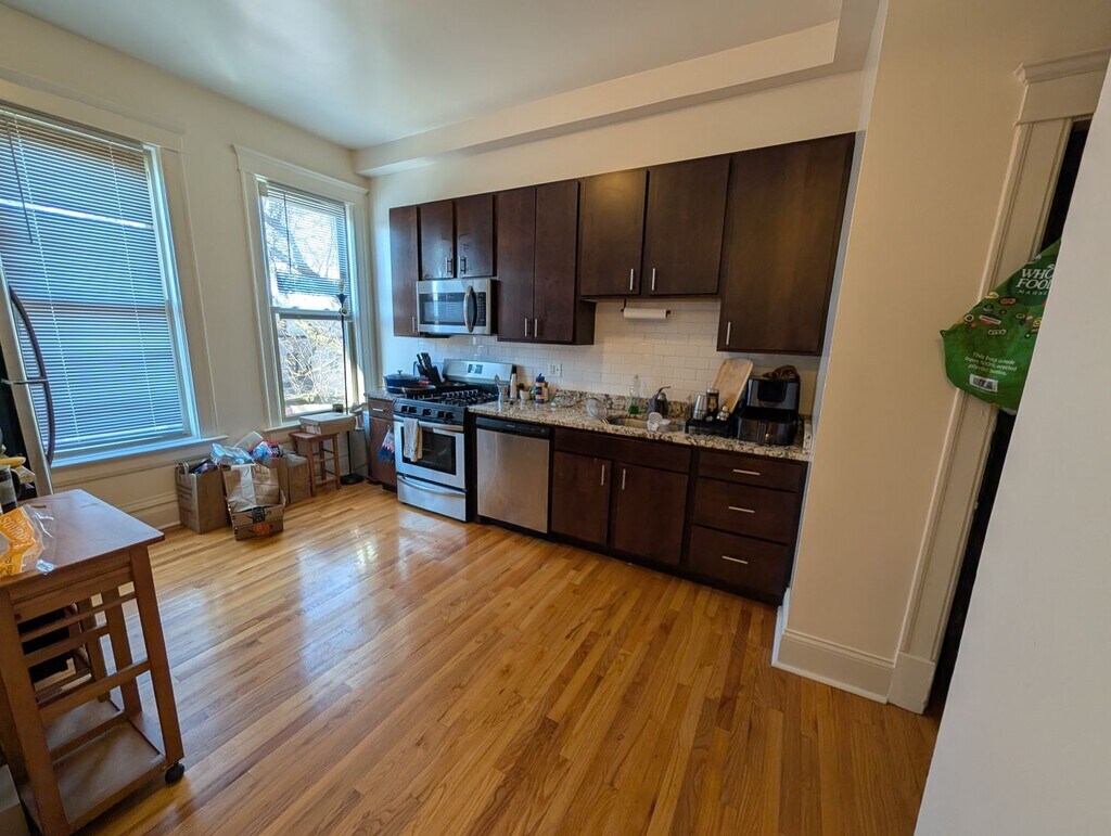 Step into modern luxury with this stunning 3 Bedroom, 1 Bath apartment in the heart of Wicker Park! The recently renovated kitchen features granite countertops, dark wood cabinetry, and sleek stainless steel appliances, including a convenient dishwasher, perfect for effortless clean-up after hosting friends and family. Relax and unwind in the large bathroom adorned with pristine white tiling and offering ample storage space for all your essentials. Gleaming hardwood floors flow throughout, adding warmth and elegance to every corner of your home. All three bedrooms are spacious with good closet space. The apartment is fully updated but has lovely vintage touches such as a built-in fireplace mantle. Enjoy the comfort of central heat and air conditioning, ensuring year-round comfort no matter the weather outside. The building also has a laundry room equipped with the PayRange app for coinless payment. Simply use the app on your phone to conveniently pay for your laundry, run a timer, and check machine availability, making chores a breeze. And let's not forget about the neighborhood! Wicker Park is a vibrant and eclectic community known for its artistic flair, trendy boutiques, and buzzing nightlife. The building is centrally located allowing you to explore all the charming cafes, unique galleries, and lush parks just steps from your front door. Cats Welcome! Don't miss your chance to live in luxury in one of Chicago's most coveted neighborhoods. Schedule a viewing today and make this stylish apartment your new home sweet home! Apartment is available April 1st.