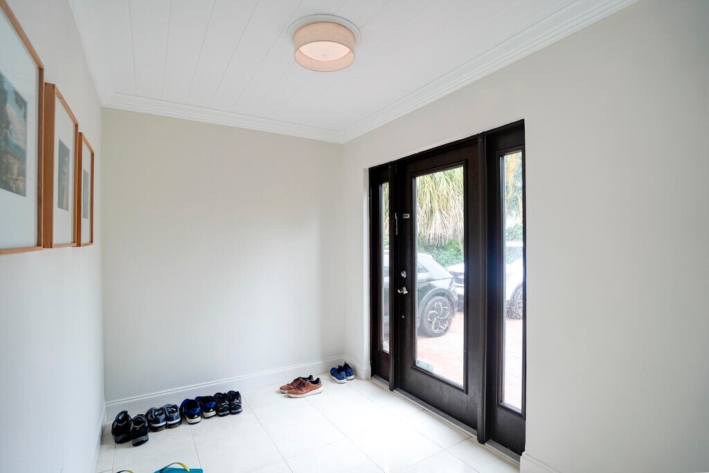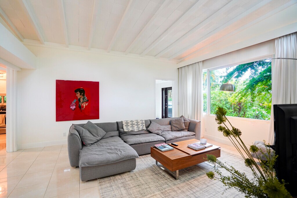 Mid-century pool home with 3 bedrooms,3 baths and a 42' resort-style pool in Northwood Shores,just steps from the Intracoastal. Single-level layout with approx. 1,926 sq ft,open kitchen with stainless-steel appliances and gas range,porcelain tile floors,exposed beam ceilings,and large windows that bring in natural light. Each bedroom has an adjacent bath,and there's a mudroom with washer/dryer and extra storage. The fully fenced oversized lot offers lush landscaping,multiple covered patios for dining and lounging,a stone fire pit,and generous lawn space. Located a few houses off the water and minutes to Northwood Village,downtown West Palm Beach,Palm Beach Island,and PBI,this home delivers an easy indoor-outdoor Florida lifestyle in a prime coastal neighborhood. MLS ID B26016623