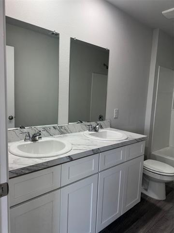 Welcome home to this wonderful 2025 built home in the desirable Treaty Oaks neighborhood. Enjoy all the room for a large family or a family that is growing. Over 3000 square feet of thoughtfully designed living space. This spacious two story home features 5 good sized bedrooms, 2.5 bathrooms and a 2 car garage. There is a versatile flex room upstairs for additional living space or maybe a place for the kids to play. The primary bedroom, a half bath and a office space are all features for downstairs. Welcome to the bright and open concept kitchen and living room area. Kitchen offers a pantry, electric stainless dishwasher, stove and microwave. Refrigerator is required. Downstairs has the convenience of laminate flooring and upstairs has mainly carpet except for the laundry room and the full bathroom. Upstairs offers four good sized bedrooms, a full bath with shower tub combo, the flex room and the oversize utility room. Two car garage and will soon have a garage door opener with remote. Come and see what all this beautiful home has to offer.