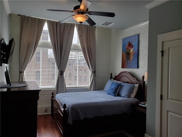 Chic French Quarter condo, ideally situated in the heart of New Orleans. This immaculately renovated building is located within blocks of the iconic Canal Street, Central Business District (CBD), Warehouse District, Canal Place, the historic streetcar line, and an array of the city's finest restaurants, boutiques, and entertainment venues. Embodying the timeless allure of the French Quarter, this condo seamlessly blends classic charm with modern amenities. The spacious bedroom boasts roomy closets, ensuring ample storage for your wardrobe and belongings. Restored hardwood floors grace the living space, providing a warm and inviting ambiance. Exposed brick walls add character and a sense of history, while the sleek granite countertops and stainless steel appliances in the kitchen offer contemporary convenience. The marble bathroom exudes elegance, providing a tranquil oasis for your daily routines. In-unit washer and dryer simplifies your laundry chores, making urban living a breeze. Ample natural light streams through the expansive front windows that look out over the FQ and CBD skylines, offering a captivating view of the historic surroundings. Access to the unit is made easy with the convenience of an elevator, and the keyless entry and security system, complete with a camera/buzzer. For those with vehicles, parking contracts are available nearby, making city living even more convenient. In this chic French Quarter condo, you'll discover the perfect fusion of historic charm and contemporary luxury, all within the enchanting backdrop of one of New Orleans' most iconic neighborhoods. Don't miss the opportunity to make this stylish condo your new home in the heart of the city. Owner pays water. Pets considered.
