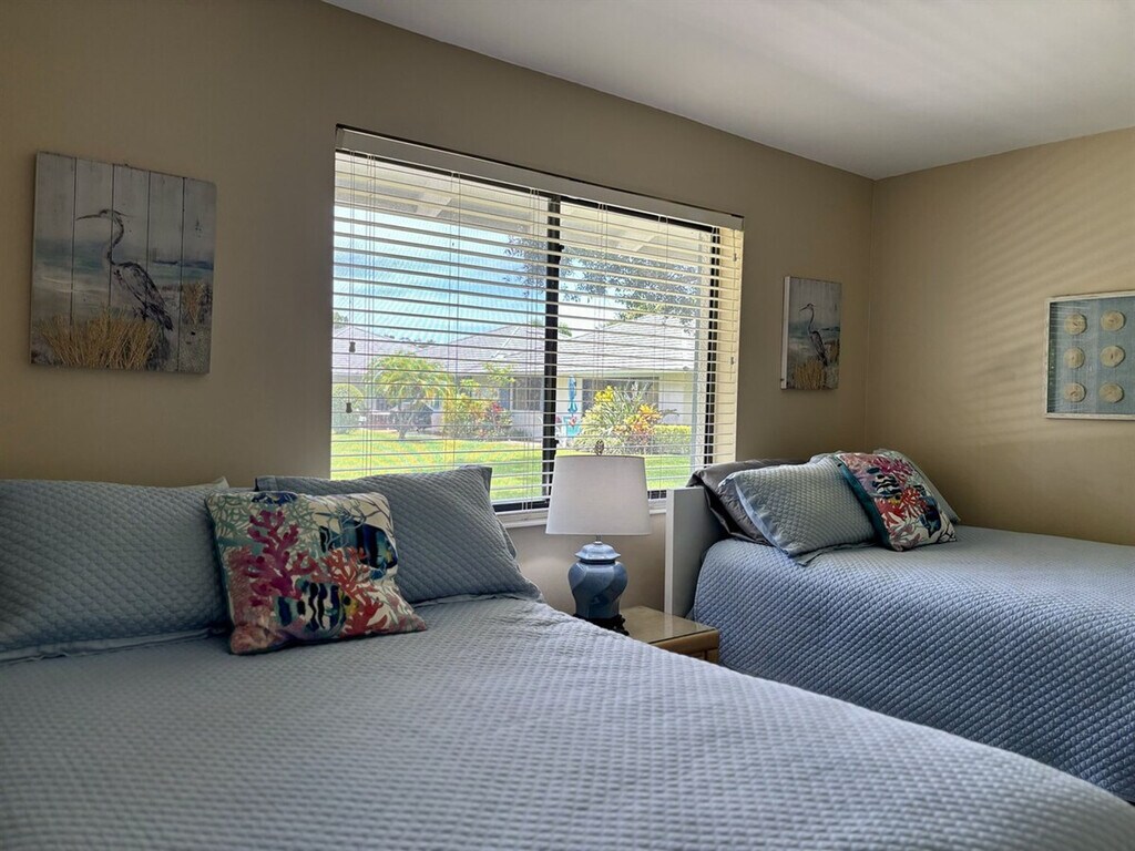 Welcome to golf paradise at PGA National! This idyllic townhome is perfect for families and vacationers of all kinds. Situated as the end unit in a row of homes, it offers two bedrooms and two baths, providing a private and quiet retreat. The community pool is a short walk away and yours to access over the course of your stay. While amenities like golf and tennis are members-only, you can access the spa through purchase on the Resort Pass app. You're just 15 minutes from Juno Beach and a 20-30 minute drive from Palm Beach International Airport, Peanut Island, and downtown West Palm Beach. As you enter the home, you'll notice the open floor plan which includes a dining table for five, an office nook, bar cart area, and living room directly ahead. The office nook has a comfortable desk chair and a monitor, great for getting some work done if needed. To the right of the entrance is the kitchen, with a kitchen hole that overlooks the dining area. The first bedroom features two full-sized beds and a private bathroom, while the master bedroom offers two king-size beds next to its private bathroom. The living room is comfortably laid out, overlooking the peaceful scenery of well-manicured landscaping and a pond. Sliding glass doors allow you to exit on two sides of the house to the outside patios, where you can enjoy grilling or sitting in the outdoor chairs while sipping your morning coffee. Pet friendly, up to a maximum of two, $100 for each pet. PGA National is an expansive community with multiple golf courses, landscaping, a community pool, spa, and more. The neighborhood is quiet and peaceful, great for taking walks. If you're a golf enthusiast, you're also very close to other public golf courses in the area. The location is incredible, just a 20-30 minute drive from Palm Beach International Airport, the beaches, Peanut Island, and downtown West Palm Beach. You can also take the Brightline train in West Palm Beach for express travel to Ft. Lauderdale and Miami. Right off the resort, you'll find plenty of options for shopping, groceries, restaurants, and entertainment. There is a guard station you'll pass when accessing the property. For your security, the primary guest's name will be added to the registry for the purposes of providing ID when entering between the hours of 9pm and 6am. Minimum rental age is 25. Check-in time is from 4PM and check-out is at 11AM. Quiet hours are observed from 9pm to 8am. No smoking or vaping on the property. No parties, events, or guests not on the booking. No firearms or weapons. Includes an office nook with a comfortable desk chair and a monitor, great for getting some work done if needed. A laptop computer is not included. Registration Number: 000031086, [SI]