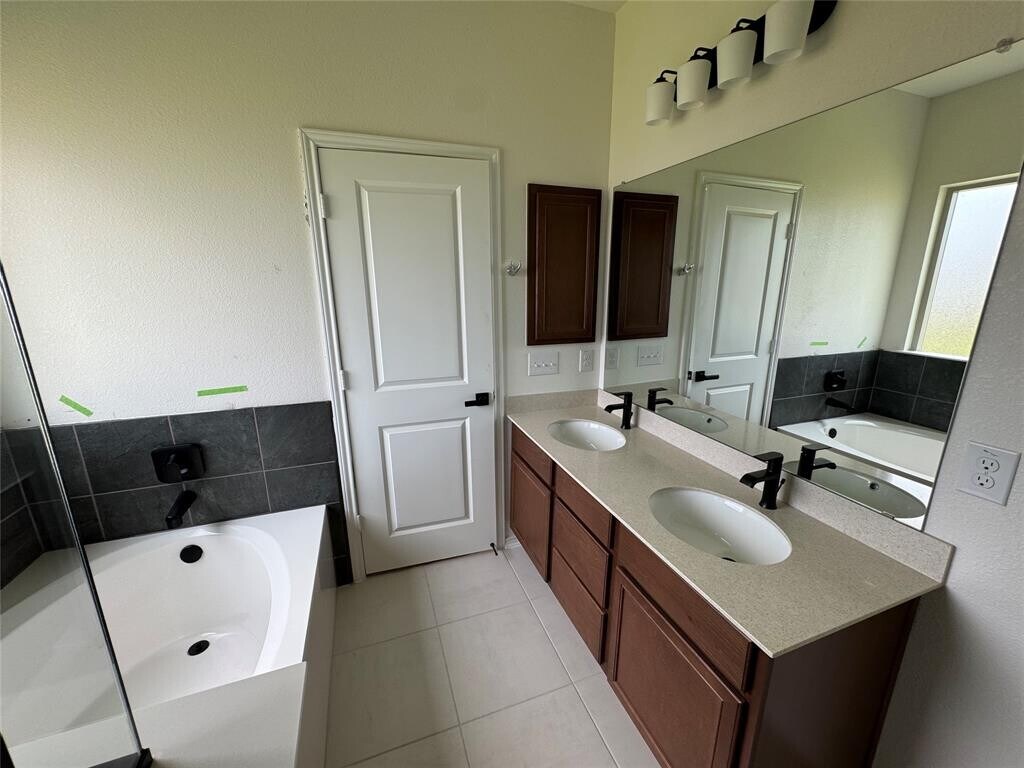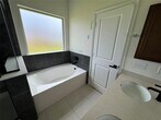 Built in 2025, this stunning 3-bedroom, 2-bath single-family home in Georgetown offers 1,655 sq. ft. of bright, open living space. The kitchen features polished granite counter tops, stainless steel appliances including a double-door refrigerator and dishwasher, wood cabinetry, and a smart Eco bee thermostat. The living and kitchen areas showcase stylish vinyl plank flooring, with cozy carpet in the bedrooms. The spacious primary suite includes dual vanities, a soaking tub with dark tile surround, and a large walk-in closet. Both bathrooms feature solid-surface counter tops and modern finishes. Enjoy outdoor living on the covered concrete patio overlooking a fully fenced backyard with a sprinkler system—perfect for relaxing or entertaining. Additional highlights include a two-car attached garage, EV charger, washer and dryer, and pet-friendly design. Zoned to Georgetown ISD, this home offers quick access to Hwy 183, I-35, H-E-B, Target, Costco, and Wolf Ranch Town Center, with an easy commute to Austin and nearby tech hubs. Modern comfort, energy efficiency, and a prime location make this 2025-built home a true standout.