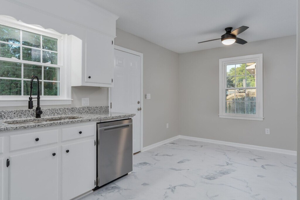AVAILABLE NOW! COMPLETELY RENOVATED THREE BEDROOM HOME IN LEXINGTON. THIS PROPERTY HAS A HALF OFF FIRST MONTH'S RENT MOVE IN SPECIAL. Three bedroom/one and-a-half bathroom single family brick home in Lexington. Updated flooring, paint, and fixtures throughout. Kitchen features new stainless steel appliances, new granite countertops, and eat-in area with ceiling fan. Separate laundry area has washer/dryer connections. Living room has plenty of light and extra closeting. Three bathrooms have ceiling fans and updated closets. Full bath has new toilet,vanity/sink, faucets and mirror. Separate tub/shower combo adds privacy. Half bath has new everything. Private driveway and fenced backyard. New heating and air unit. New windows. Small dog considered with pet application, pet fees paid, and owner approval. No smoking. All properties require that the renter carries renter's insurance. Contact us today to view this lovely, move-in ready home.