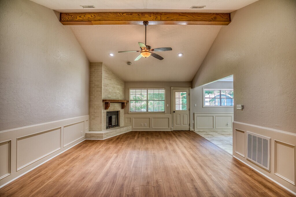 Tucked away in the back of a desirable,well-established neighborhood,this charming 3 bedroom,2-bath brick home offers the perfect blend of comfort,style,and convenience. With just under 1,600 square feet of thoughtfully designed living space,you'll love the spacious bedrooms,abundant built-ins,and oversized closets throughout. Step inside to find an updated kitchen and bathrooms adorned with natural earth tones,granite countertops,updated bronze hardware,and modern tile in all wet areas. New carpet and luxury vinyl plank flooring add warmth and durability to the space,making it move-in ready from day one. Enjoy your morning coffee on the covered front porch or unwind in the evening on the covered back patio overlooking a fully fenced,oversized backyard — perfect for kids or entertaining. The community features a playground and swimming pool,adding even more value and enjoyment for the whole family. MLS# 51961455
