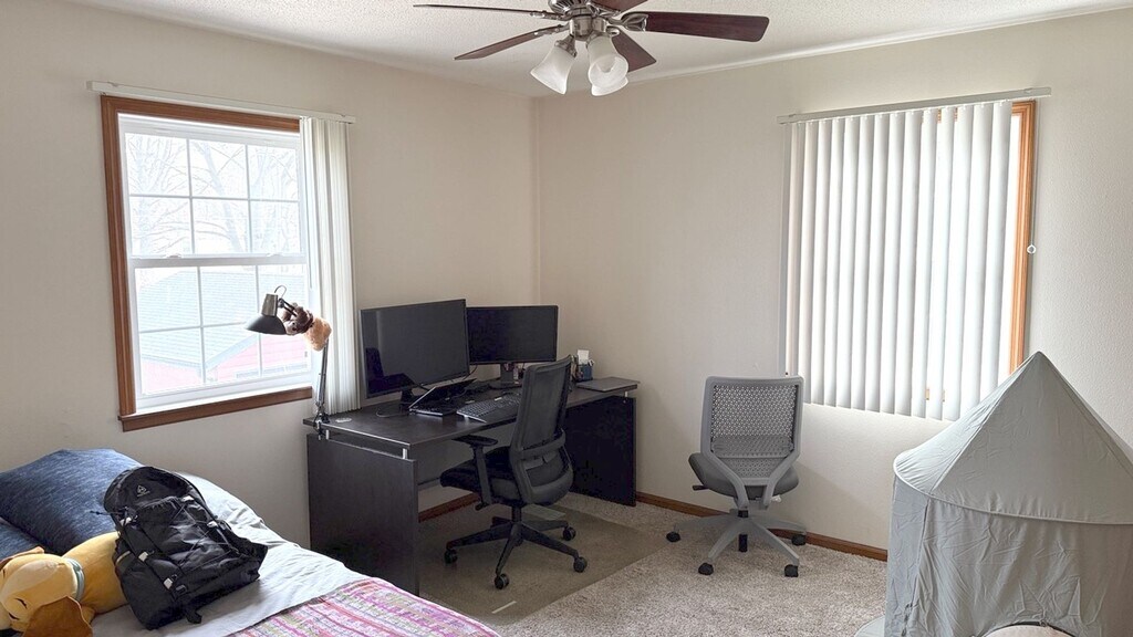 Roomy 2 bedroom, 1 1/2 bath duplex located in a forest setting with walking distance to Jack Trice Stadium, Hilton Coliseum, and connection to trails for Brookside Park. Listen to birds on the covered patio or enjoy the forest view from the living room. Private garage has opener and key pad. Eat in kitchen includes a pantry, 21 cube frig with ice maker, garbage disposal, dishwasher, flat stop self cleaning stove, and handy half bath by entrance door to back yard and basement. Energy efficient windows include vertical blind window treatment. Flooring all recently replaced and interior doors are all 6 panel throughout. Bedrooms are spacious, both have double closets with switched lights and ceiling fans. Master bedroom faces the woods for a retreat like setting. Basement has a large non sleeping finished room with natural light. Dedicated laundry room in basement is getting upgraded with new windows, new lighting, folding table, and clothes bar. Laundry room has washer, dryer, and lots of storage with shelving. Flexible possession April 1 with a few days sooner if needed. Sorry, no smoking of any kind and no pets. No pets. No undergraduates. No smoking or vaping inside or outside of unit. Monthly gross income needs to be three times the housing expense. Background and credit checks are required, minimum 620 credit. Before preparing a lease, we need an application for everyone that would be living at the property that is 18 and over, our application fee is $30 per applicant.