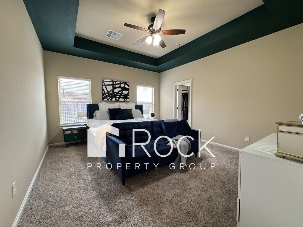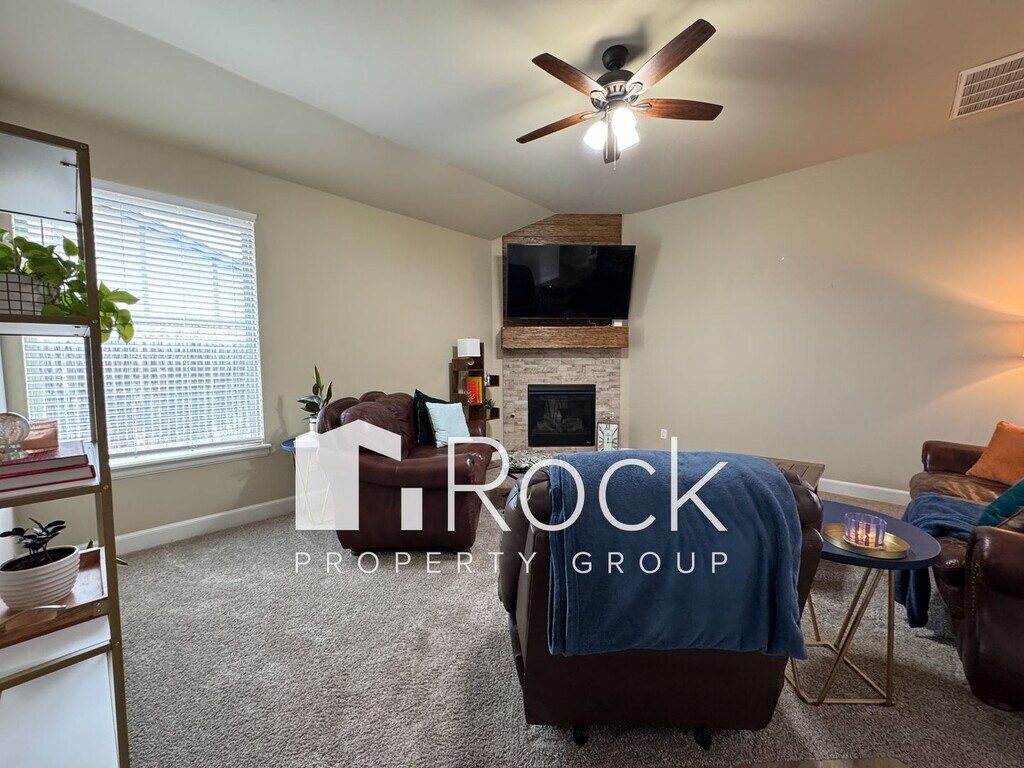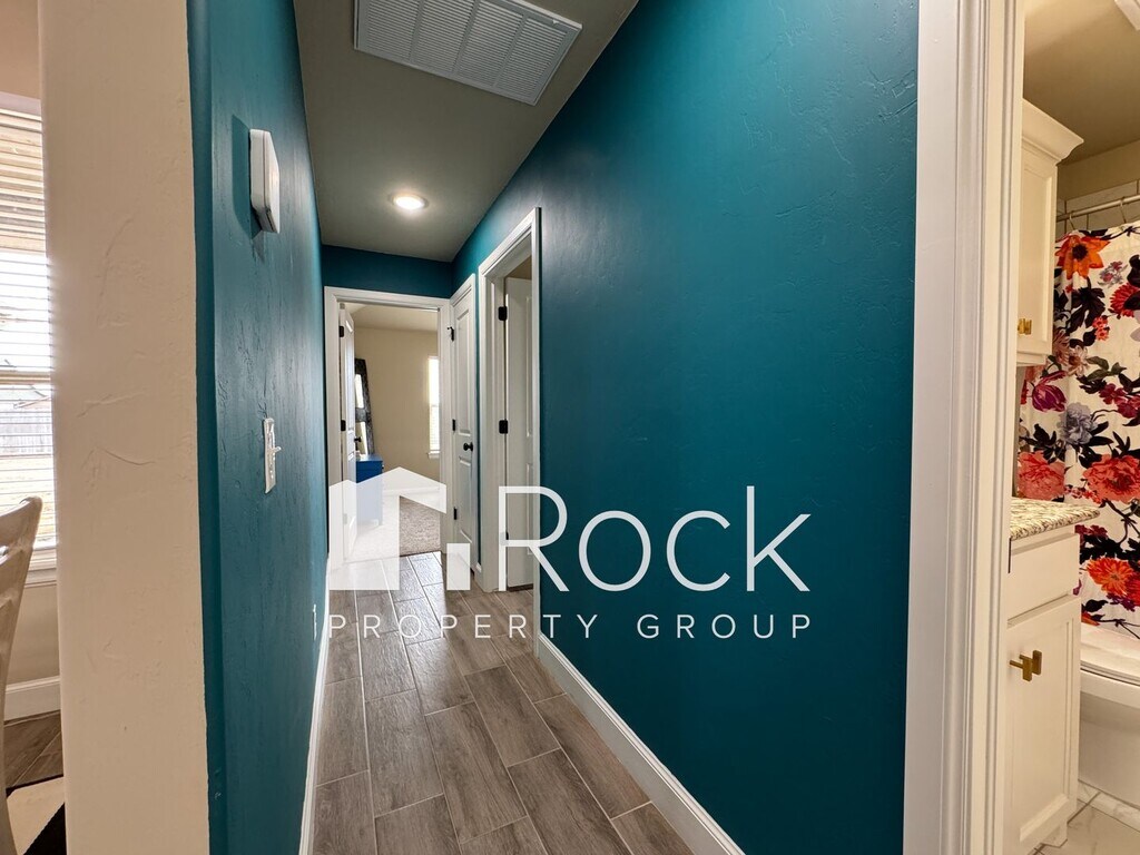 Receive half off the first month's rent when you move in by February 1st! Enter into a spacious open floor plan featuring white painted woodwork with vibrant splashes of color throughout, wood tile flooring, granite countertops with a breakfast bar in the kitchen, stainless steel appliances, double vanity in master bathroom, interior laundry room, and large backyard and covered patio to entertain family and friends. The 3-car garage includes an inground storm shelter. **PET FRIENDLY** - Pets are approved on a case by case basis (pet deposit and pet rent will apply) Questions? Text us at Application Fee: $50.00 (everyone 18 yrs & up must apply)