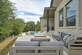 Welcome to your ideal Rough Hollow rental—an inviting single-story home designed for comfort, convenience, and easy living. This spacious layout features 4 bedrooms, a dedicated office, and two flexible living areas, offering plenty of room for work, relaxation, and entertainment. The open-concept kitchen is a standout, complete with a gas cooktop, stainless steel appliances, walk-in pantry, and an oversized island perfect for gathering. It flows seamlessly into the dining and living spaces, creating a warm and functional environment for everyday living. Step outside to a covered outdoor living area with a built-in grill, beverage fridge, and generous counter space—ideal for hosting or unwinding. The heated saltwater pool and expansive cul-de-sac backyard make this home a true retreat. The primary suite offers peaceful privacy with tall ceilings, custom accents, and a spacious bathroom with soaking tub and walk-in shower. A bonus room off the dining area adds even more flexibility—great as a second office, playroom, or studio. Enjoy full access to the Rough Hollow community amenities, including a resort-style pool, lazy river, splash pad, tennis courts, playground, trails, sports courts, dog park, and more. Zoned to highly rated Lake Travis ISD.