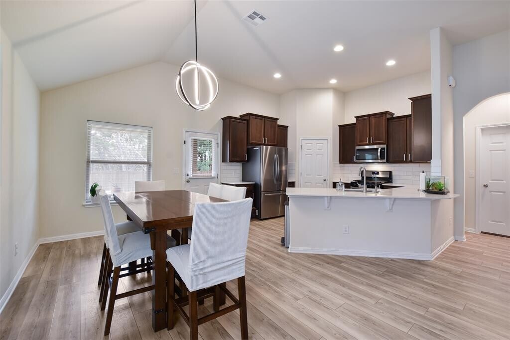 Single-Story Home in Larkspur that backs to Greenbelt Views and no neighbors behin! Welcome to this spacious 4-bedroom, 3-bath home with a dedicated office, nestled in the highly desirable Larkspur community of Leander.This home offers rare privacy and serene natural views. Inside, you’ll find a bright, open-concept layout with a large kitchen, ample cabinet space, and generous living and dining areas—perfect for entertaining or everyday living. The private primary suite features a large walk-in closet and en-suite bath with dual vanities, soaking tub, and separate shower. The flexible floor plan includes a dedicated home office ideal for remote work or a quiet study. Three additional bedrooms and two full baths offer room for family, guests, or hobbies. Located just minutes from the new Costco and Target developments, this growing area offers unmatched convenience. The home is walking distance to an on-site LISD elementary school and just steps from community amenities including 2 pools, a sports court, playground, and nature trails. Key Features: 4 Bedrooms + Office 3 Full Bathrooms Single-Story Floor Plan Greenbelt Lot Community Pools, Trails, Playground & Sports Court LISD Elementary School in Neighborhood Minutes to New Retail & Dining Don’t miss your chance to own in one of Leander’s fastest-growing communities.