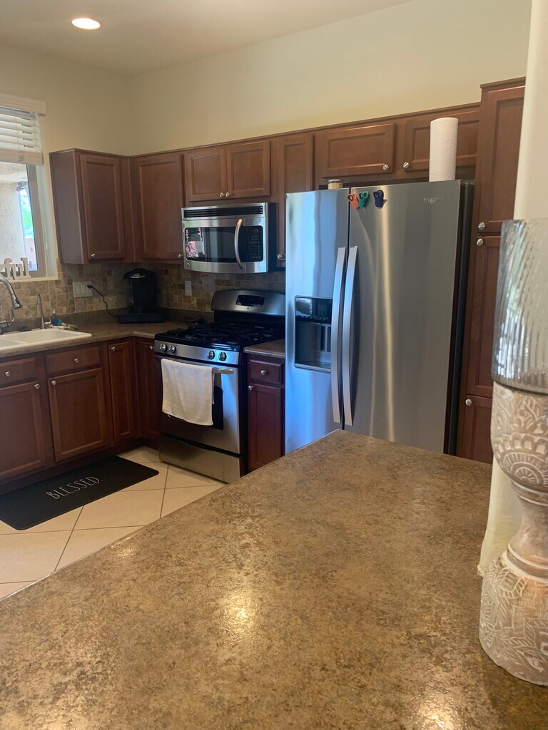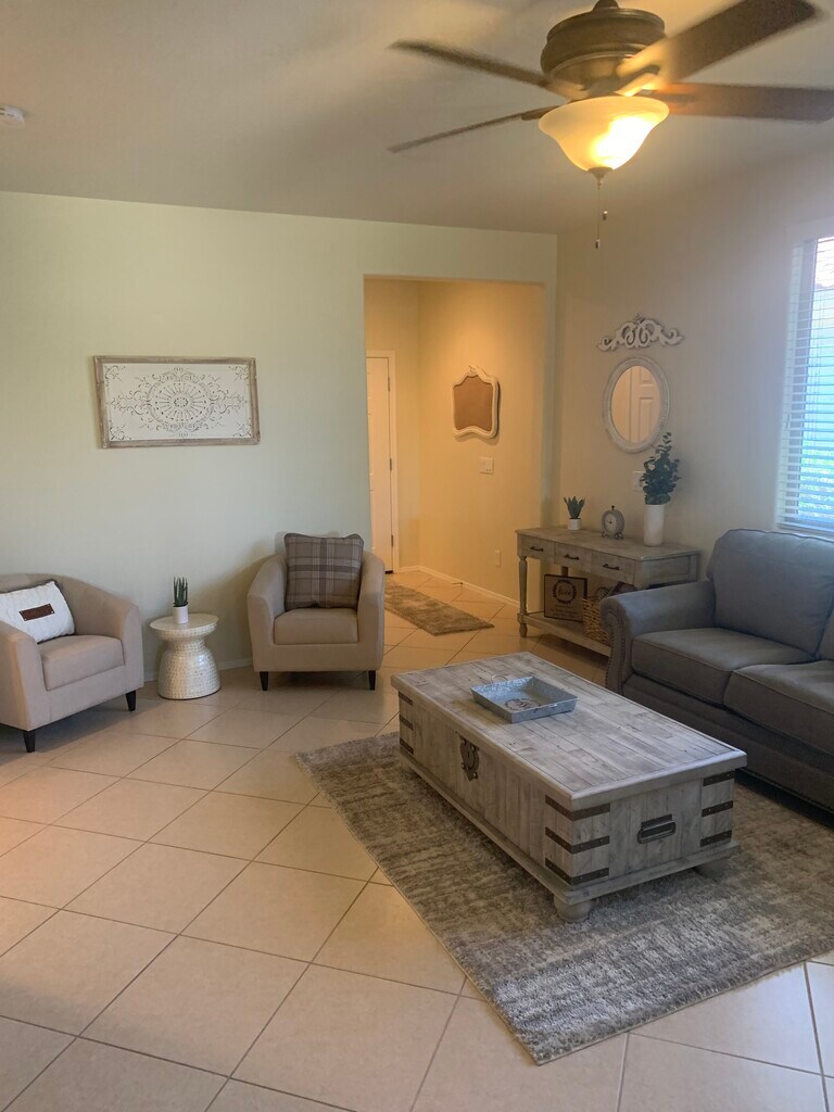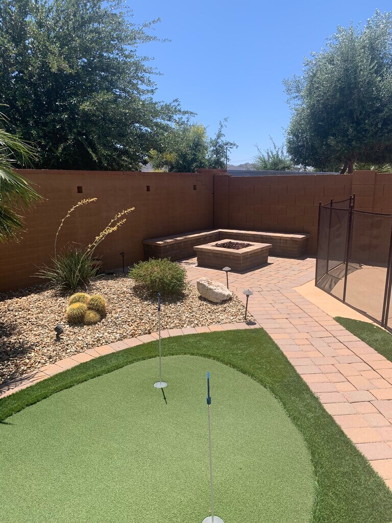 55+ community Absolutely beautiful home! Resort like backyard has Heated, Pebble sheen pool with removable fence. Gas firepit, Custom putting green. Power shades and awnings w/remote. Great room with fireplace & entertainment niche. Eat-in kitchen with stainless gas stove, microwave & custom buffet island. Split bedrooms. One of a kind & loaded home. Includes all the amenities as if you lived fulltime. ($50 extra charge paid to Sun City Festival for use of Workout Facility, Golf Course discount, Community Spa (Heated), Community Spa, Community Pool (Heated), Community Pool, Tennis Court(s), Clubhouse/Recreation Room) BOOKING MAY-SEPT $2000/ OCTOBER-April $2800. Golf Cart included. AVAILABLE February, March and April.