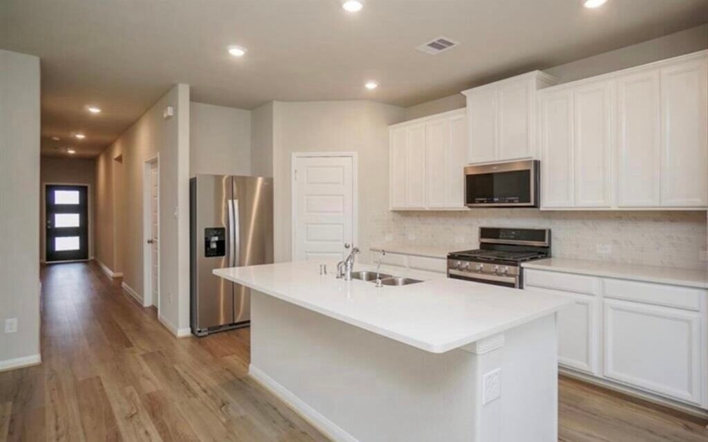 North east facing. Like BRAND New Single Story 3-4 Bed 2 Bath with OFFICE and all stainless steel appliances including washer,dryer and refrigerator included. 6 ZONE SPRINKLER system. UPGRADED front door,GAS stub added in the covered patio for outdoor cooking,UPGRADED bluebonnet chopped stone and brick elevation. Fresh paint,upgraded kitchen cabinets and island with spacious pantry. HUGE backyard on a PREMIUM cul de sac lot. Master bedroom with en-suite bath. Ready to move-in. Easy access to 99,Westpark Tollway,and shopping,restaurants,La-Centerra Katy. MLS# 73814935