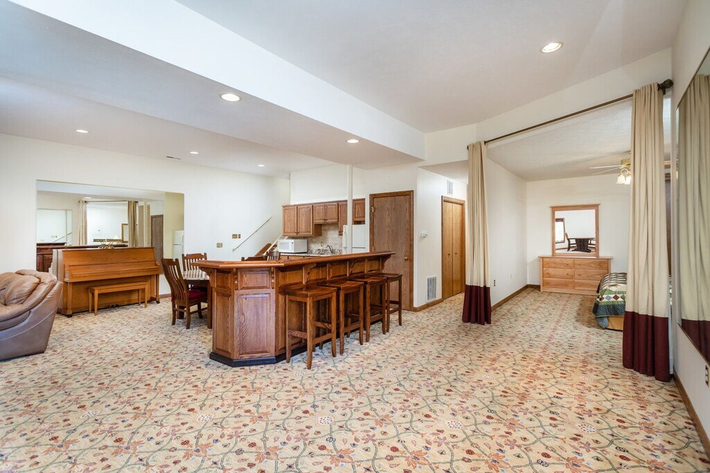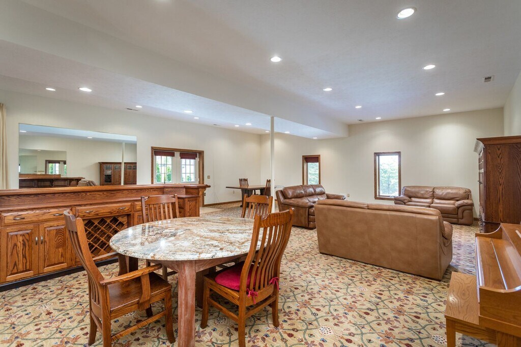 Impressive! This lovingly cared for home offers all of the comfort and convenience of easy one level living with the added value of a full finished walk out basement (over 3700 finished square feet!). You will want to enjoy the breathtaking sunsets while gazing upon the Western Allegheny mountains or the nearby lake on your generous hand laid slate patio. The home boasts 3 generous bedrooms on the main level including a spacious primary suite with a luxurious bath. The living and dining area are completely open and boast hardwood floors, fireplace and a balcony from the living room to continue to enjoy the views. The basement is impressive with long lasting wool carpet, an open floor plan with kitchenette, additional room that could be used for sleeping or office, and a 3rd full bath. The home has been masterfully landscaped and hardscaped making indoor living and outdoor living equally enjoyable. This is NOT your typical Duplex. Enjoy comfort, quality, style, and beauty in this lovely home.