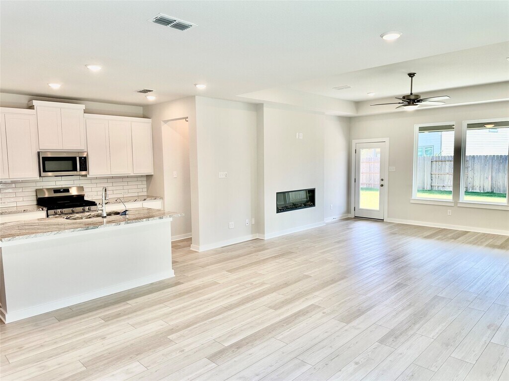 Welcome to this stunning,never-lived-in one-story home in Mason Woods featuring 4 bedrooms,2 full baths,and stylish modern finishes throughout. The open concept living area is bright & inviting,highlighted by a beautiful electric fireplace perfect for cozy evenings or entertaining. Kitchen boasts granite countertops,stainless steel appliances,elegant cabinetry,and a spacious island ideal for family meals or gatherings. The private primary suite features dual sinks,walk-in shower,and a generous walk-in closet. Secondary bedrooms are well-sized with ample storage. Enjoy outdoor living with a covered patio and fully fenced backyard. Additional highlights include high ceilings,energy-efficient construction,a tankless water heater providing unlimited hot water,and a two-car garage. Mason Woods offers resort-style amenities including a pool,fitness center,playgrounds,and scenic walking trails. Conveniently located near HW 99,529,shopping,dining,and top-rated CFISD schools. MLS# 48851518