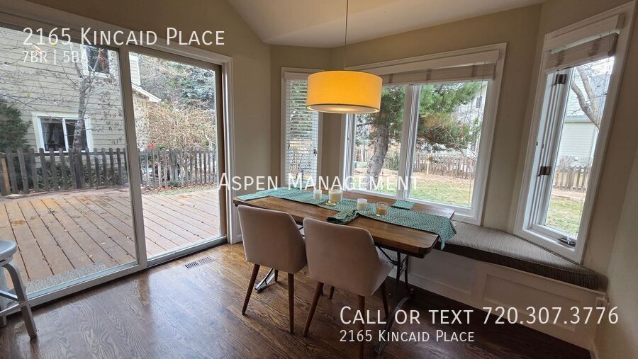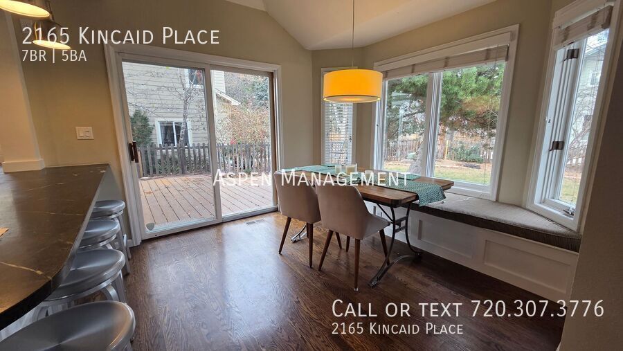 PLEASE NOTE: Lease to Expire 5/31/2026, with a 6/30/2026 expiration possible. Located on a cul-de-sac in central Boulder, this spacious two-story home offers more than 4,400 sq. ft. of well-designed living space on a large, landscaped lot. With seven total bedrooms and multiple living areas, the layout works well for a variety of needs. The upper level includes four bedrooms: a primary suite with a private bath, a second ensuite bedroom, and two additional bedrooms that share a nearby bathroom. The main floor offers an additional bedroom that also functions well as an office or hobby space, along with another full bathroom. The lower level includes two more bedrooms with plenty of natural light and a full bath. The main floor features an open family room with vaulted ceilings, French doors, and a wood-burning fireplace. A formal dining room and a bright living room add more space for daily living or gatherings. The updated kitchen is well equipped with a professional gas range, an oversized farmhouse sink, a soapstone island with bar, and an open layout for easy flow. Upstairs, the primary suite provides a large walk-in closet, dual vanities, a large soaking tub, and a frameless glass shower. Additional conveniences include a full second kitchen in the basement, an organized mudroom, and a three-car garage with built-in storage. The outdoor areas are designed for year-round use, and the home is close to Boulder’s trail system, parks, hiking, shopping, and restaurants Sorry, no students. Sorry, no cats. 1 dog under 35 pounds and over 1 years old permitted with standard pet rent and deposit. RHL-01004637 Portable Tenant Screening Reports (PTSR): 1) Applicant has the right to provide Aspen Management with a PTSR that is not more than 30 days old, as defined in § 38-12-902(2.5), Colorado Revised Statutes; and 2) if Applicant provides Aspen Management with a PTSR, Aspen Management is prohibited from: a) charging Applicant a rental application fee; or b) charging Applicant a fee for Aspen Management to access or use the PTSR. If Applicant provides Aspen Management with a PTSR: a) the PTSR must be available to Aspen Management by a consumer reporting agency/third-party website that regularly engages in the business of providing consumer reports; 2) the PTSR must comply with all state and federal laws pertaining to use and disclosure of information contained in a consumer report by a consumer reporting agency; and c) Applicant certifies that there has not been a material change in the information in the PTSR, including the Applicant’s name, address, bankruptcy status, criminal history, or eviction history, since the PTSR was generated. Central Ac Custom Finishes Gas Fireplace Stainless Appliances Stone Countertops Washer/Dryer In Home Washer/Dryer In Unit