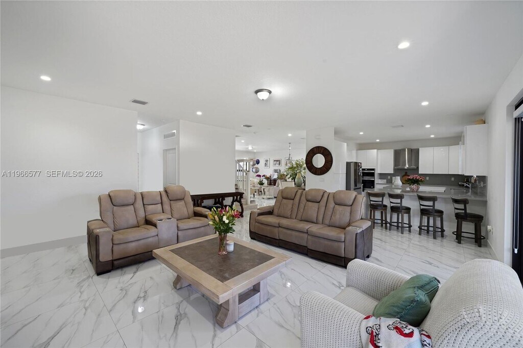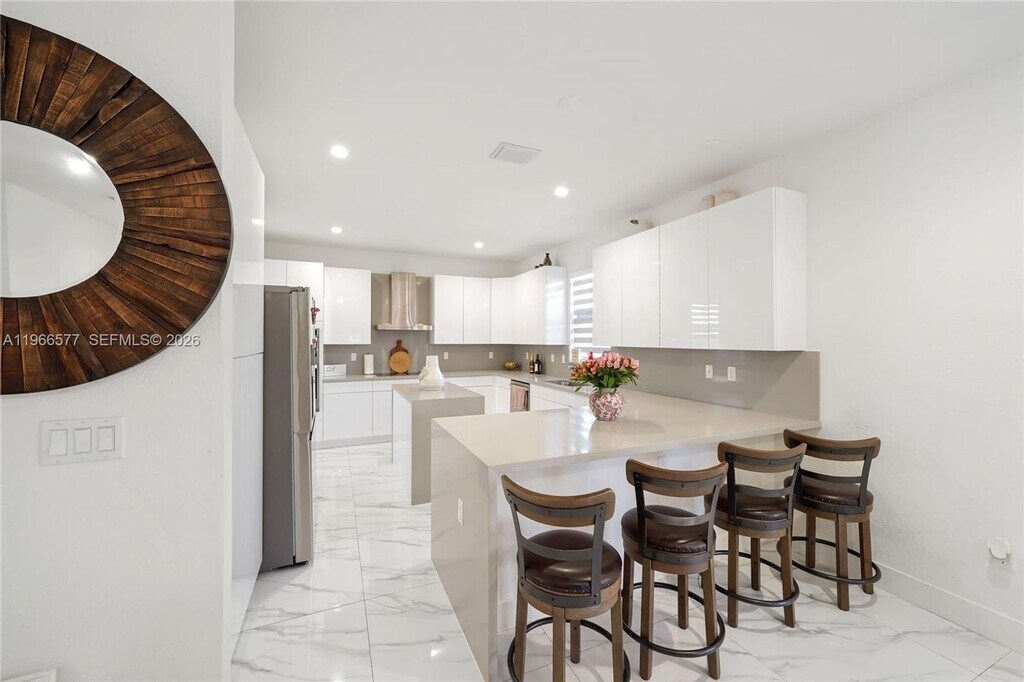 Courtesy of The Keyes Company Posted by Andrew Coleman with EXP Realty . Spectacular 2021 two-story single-family home featuring 4 Spacious Bedrooms and 4 Full Bathrooms. Elegant Porcelanato tile flooring flows throughout entire home. Modern European-Style kitchen is equipped with Stainless Steel appliances, Quartz countertops and Large Island. Spacious Master bedroom offers his and hers walk-in closets and Luxury Bathroom with double vanity and dual shower. Functional layout includes a Junior Suite With private bathroom and 2 bedrooms connected by a Jack and Jill bathroom. Full Cabana bathroom on the first floor with direct access to a large fenced patio, ideal for outdoor entertaining.
