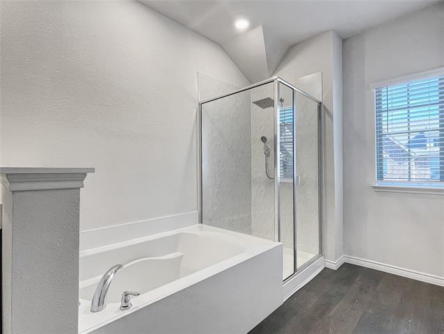 Like new townhome features 3 bedroom, 2.5 baths. Large primary bedroom with en-suite bath with large garden tub and tile shower and dual sinks. Generously sized secondary bedrooms with carpet and large closets, bathroom and laundry upstairs. Downstairs the open floorplan living room with luxury vinyl plank floors opens to the kitchen. The gourment kithcen has stainless steel appliances, gas range, quartz countertops, built in microwave, disposal, dishwasher with lots of cabinets, refrigerator,. washer, and dryer are provided. Rear entry 2 car garage has epoxy floors. This unit is immaculate and gently cared foe. Walk to Community Pool, Mesquite Rodeo, convenient to 635, shopping, movie theather, and restaurants and short drive to Downtown Dallas.