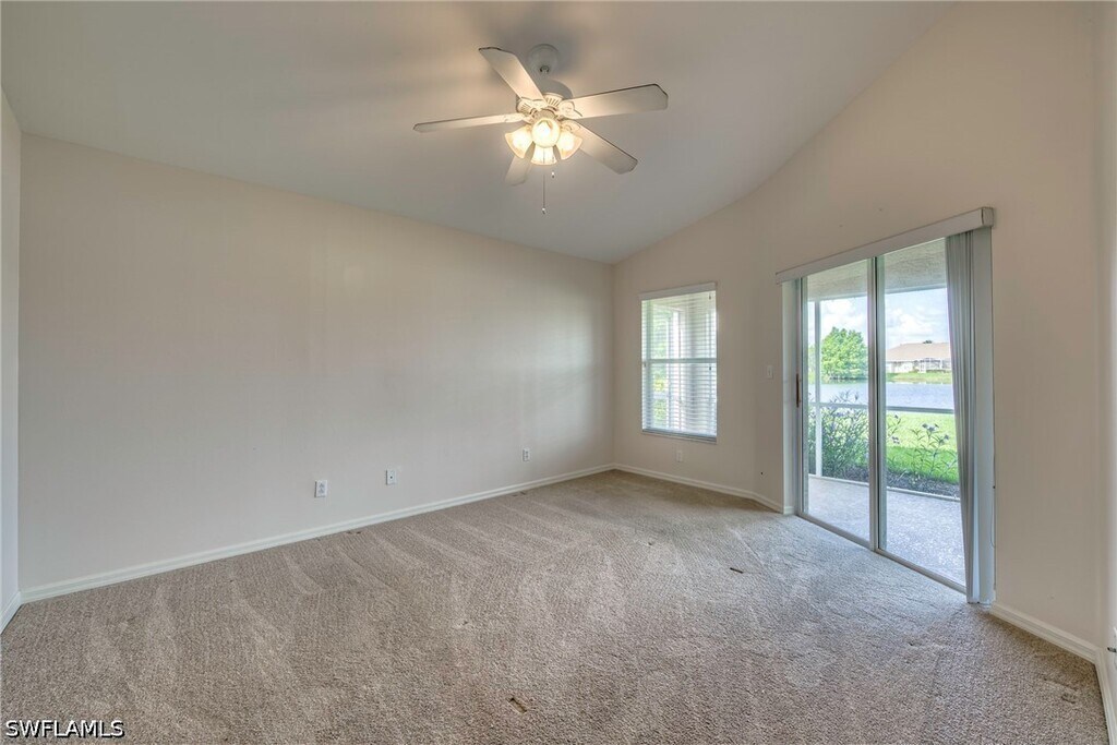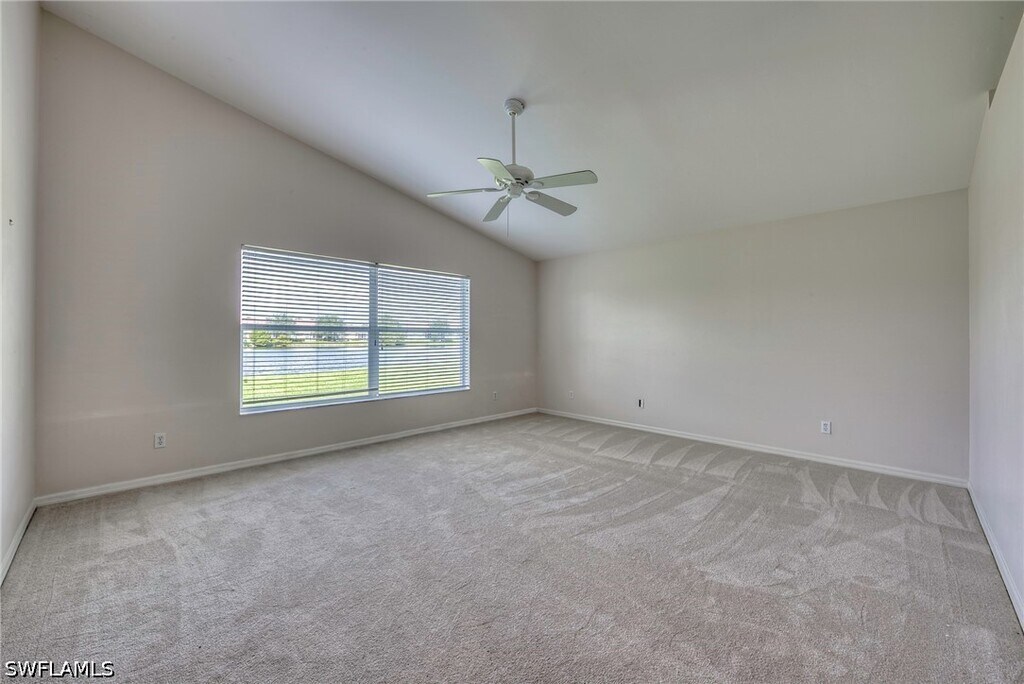 Enjoy peaceful lake and golf course views from this 3 bedroom,2 bath lakefront home featuring a spacious great room floor plan with vaulted ceilings. The large master bedroom offers a walk-in closet and attached bath with dual sinks and a walk-in shower. The eat-in kitchen includes a breakfast bar and overlooks the family room,creating a comfortable flow ideal for entertaining. Stainless appliances have been installed since pictures were taken. Step out to the screened rear lanai and take in the serene setting of the water and golf course beyond. Lease includes lawn care,basic cable and Internet through Xfinity. Stoneybrook amenities offer something for everyone! Exercise room,tennis courts,pickleball,volleyball,basketball,in-line skating rink,bocce ball and baseball field! The golf course is public so you can pay when you play. Conveniently located close to shopping,dining,interstate,beaches,university and airport. Short walk to golf course clubhouse,CVS,Publix,Miromar mall and Germain arena. 15 minutes from airport baggage claim. Perfect location and great amenities make Stoneybrook a popular choice!