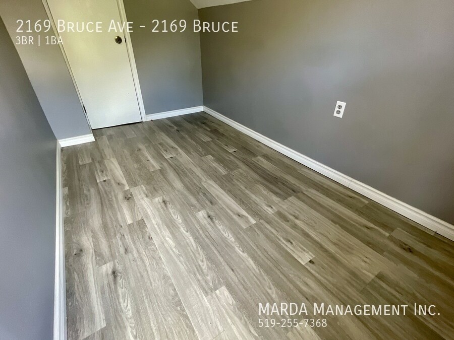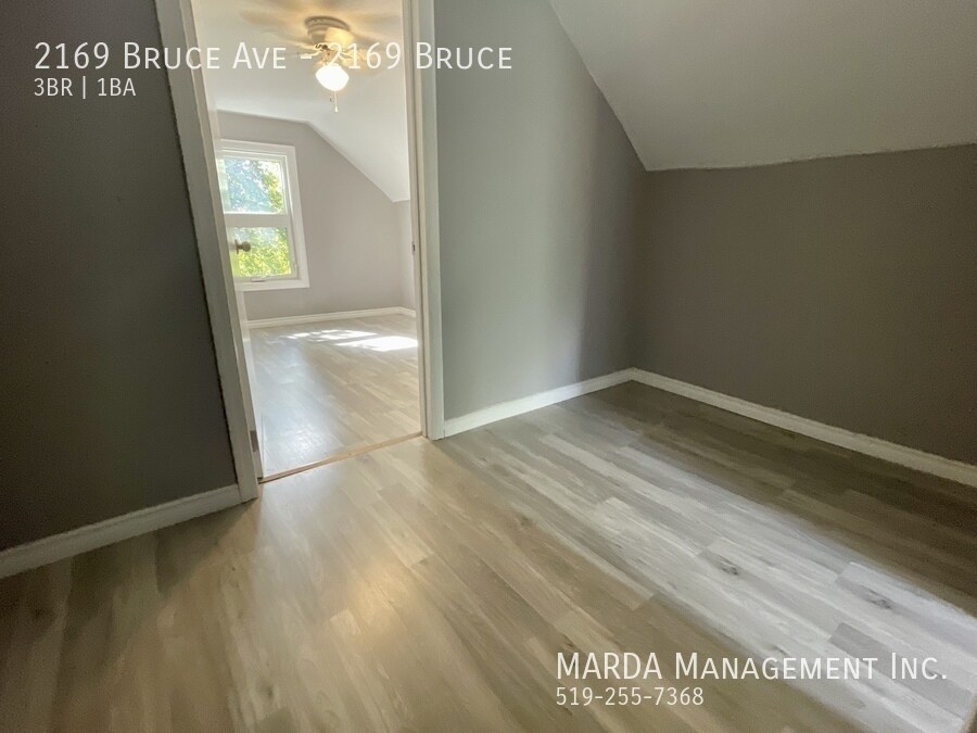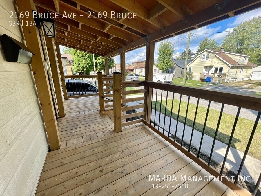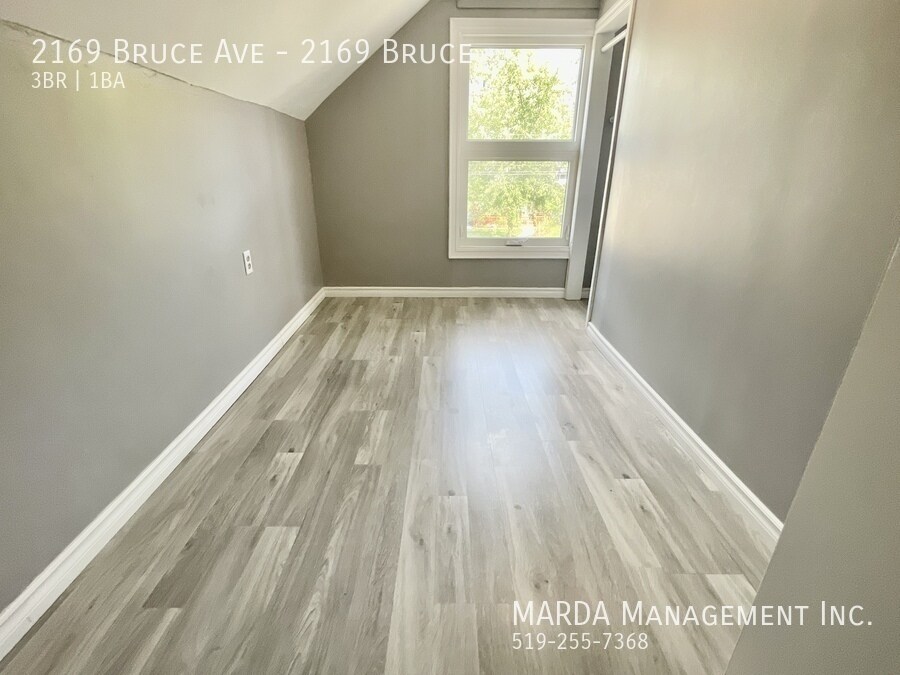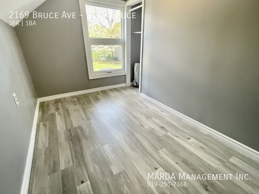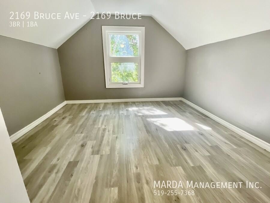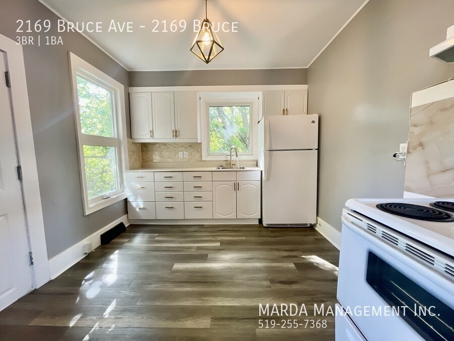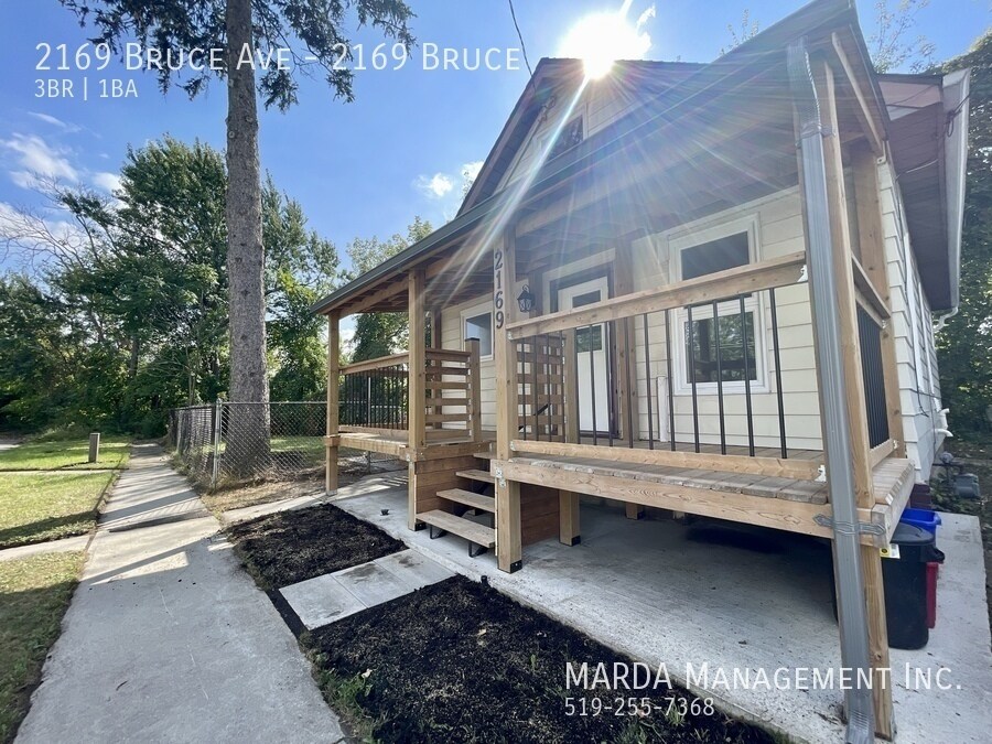 Welcome to 2169 Bruce, a beautifully renovated 3 bedroom, 1 bathroom single-family home offering modern finishes and bright, comfortable living throughout. This home features windows in every room, allowing for excellent natural light, and beautiful grey laminate flooring throughout for a clean, contemporary feel. The kitchen is finished with stunning white cabinetry accented with gold fixtures, creating a stylish and inviting space. The bathroom includes a stand-up shower, vanity, and toilet, designed with updated finishes. One bedroom is conveniently located on the main floor, while upstairs youll find two loft-style bedrooms, adding character and flexible living space. Enjoy outdoor living with a large front porch, a back deck, and a fully fenced backyard with a shed, perfect for storage and outdoor use. Tenants are responsible for hydro, water, gas, lawn care, and snow removal. One-year minimum lease. First and last months rent and a credit check are required. Professionally managed by MARDA Management, offering 24/7 maintenance support with a live agent and easy, convenient rent payment options. Call MARDA MANAGEMENT today at or email to schedule your viewing. Video Tour: Cable Hookup Ready Fenced Back Yard Front Porch Laminate Flooring No Smoking Allowed Pet Friendly