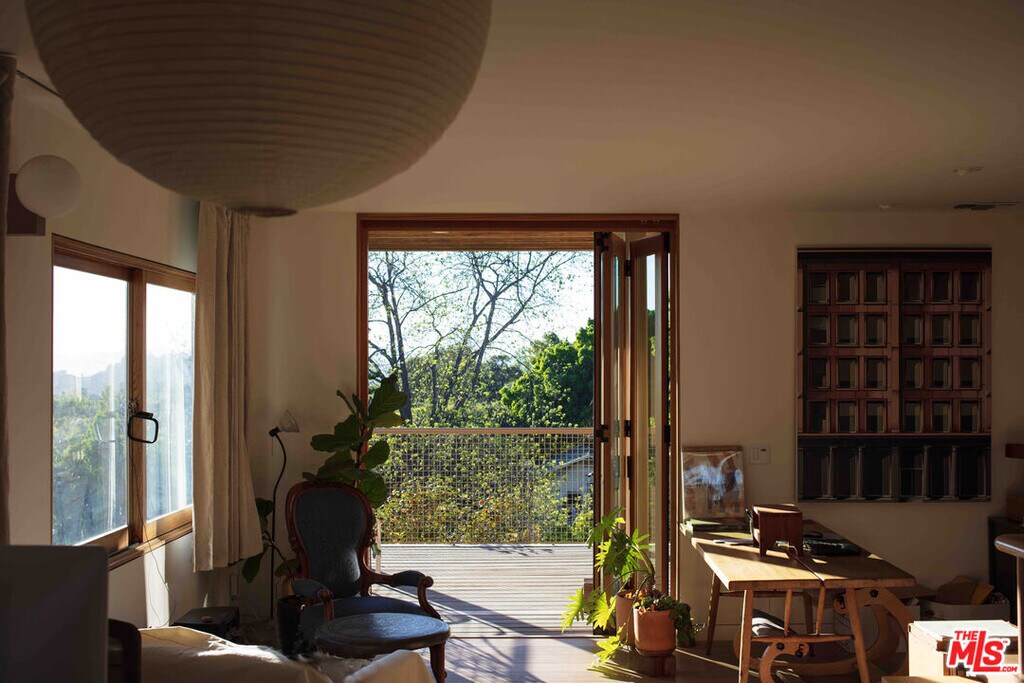 Two months furnished lease in this beautiful architectural home in Echo Park. Close to coffee shops and restaurants. Beautiful views from the balcony into the hills and from the covered patio, which can be completely opened up from the living room into the garden. Remodeled by Mexico City-based architecture firm PRODUCTORA. They extended the small California Bungalow through a grid-like steel frame. Six cubic squares make up the framework of the addition, which includes covered terraces, the upstairs master bedroom, and two new interior spaces that are incorporated into the kitchen area on the lower level. The placement just a few feet shy of the original facade creates a transitional space that mediates between the house and garden, protecting it from the afternoon sun. Focusing on a minimal material palette, elements of the design are reinforced and repeated to create a cohesive set of interconnected spaces. The same marble that lines the bathtub also forms the kitchen countertop. Highlighting the tension between texture and solid color, the architects incorporated oak wood and concrete flooring with wooden cabinetry painted in soft pinks and dark green." (Dwell, 2017)" MLS# 26672057