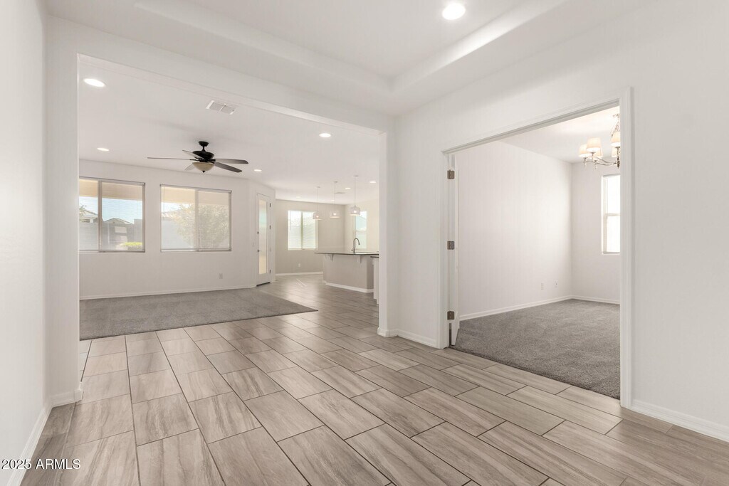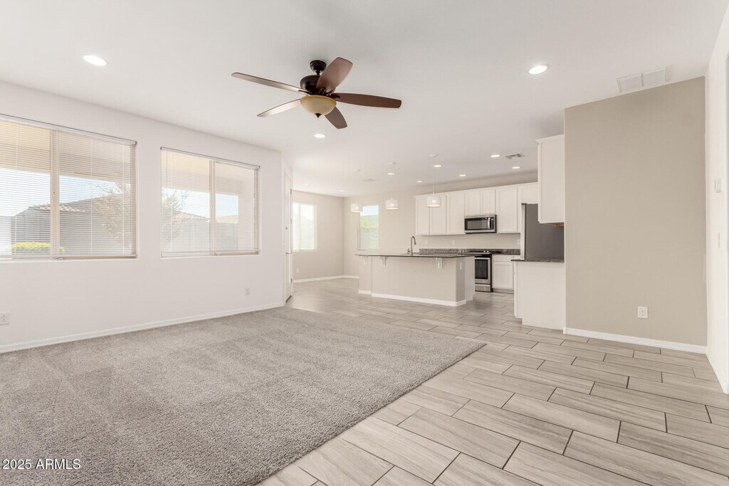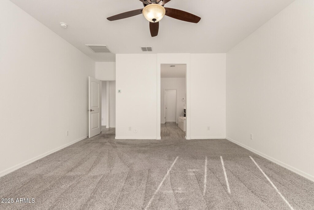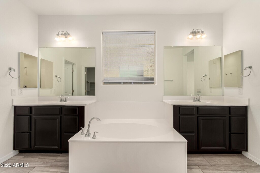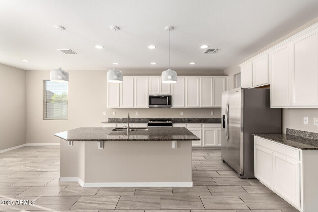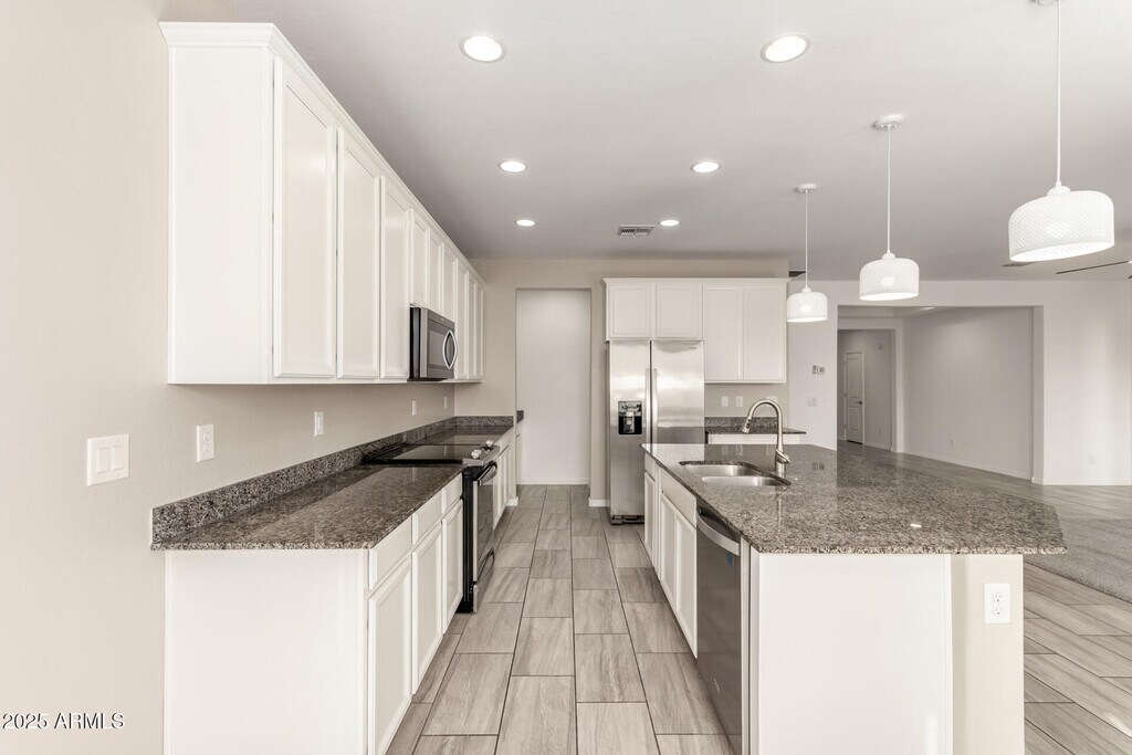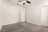 This beautifully designed residence offers an open-concept layout perfect for modern living. The chef's kitchen features crisp white shaker cabinetry,granite countertops,and stainless steel appliances,seamlessly opening to a spacious family roomideal for entertaining. Stainless steel appliances continue in the laundry room for a cohesive,upgraded feel. The luxurious primary suite is a true retreat,complete with dual sinks,a freestanding soaking tub,a walk-in shower,and a generous walk-in closet. All guest bedrooms also feature walk-in closets,offering ample storage throughout. Additional highlights include a 3-car tandem garage,a large covered patio,and a low-maintenance backyard perfect for relaxing or hosting gatherings. Conveniently located just minutes from San Tan Mountain Regional Park,Queen Creek Olive Mill,Schnepf Farms,and morethis home offers the perfect blend of comfort,style,and location.