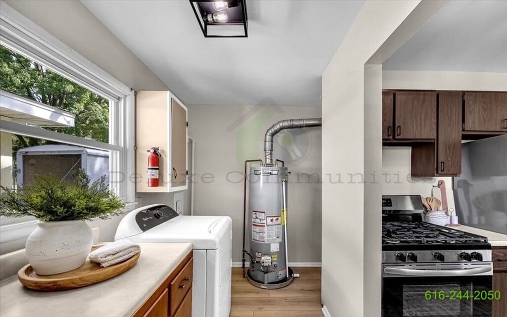 Welcome to the newly remodeled 3-bedroom home in the heart of Kentwood, MI! This stunning property boasts a modern kitchen equipped with stainless steel appliances, including a stove and refrigerator. The home features a main floor laundry, providing convenience and ease. The hardwood floors and new carpeting add a touch of elegance and comfort. The basement provides extra storage space, ensuring you'll never run out of room. The home is bathed in natural light, thanks to the new windows. The very spacious backyard, complete with a fenced-in yard, offers a great outdoor space for relaxation or entertaining. The home is centrally located, close to the highway, town, and public transportation, making commuting a breeze. The property also offers off-street and garage parking. The online application and payment system, along with fast response maintenance, ensure a hassle-free living experience. This move-in ready home is waiting for you!