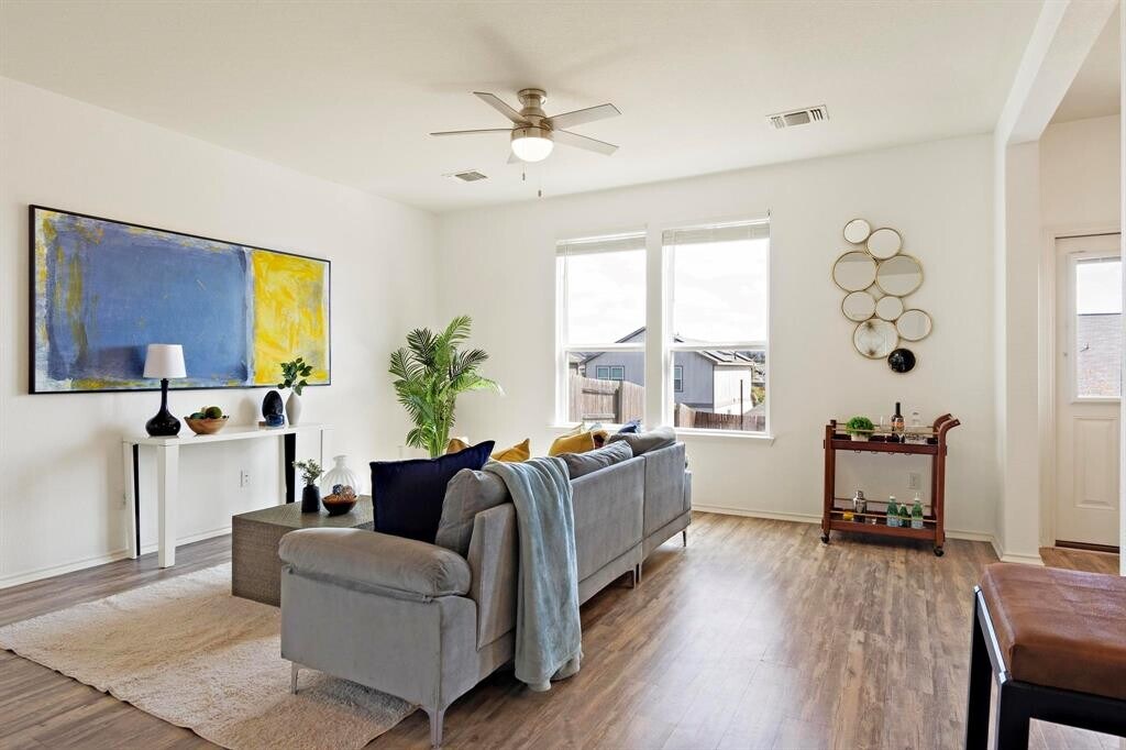Welcome to 217 Boxwood Dr, a stunning 3-bedroom, 2.5-bathroom home located in the desirable Sunfield community of Buda, Texas! This spacious, two-story single-family residence, built in 2020, offers 1,819 square feet of modern living space designed for comfort and style. The home features an inviting open-concept layout, perfect for family living and entertaining. The kitchen contains beautiful granite countertops, a breakfast bar, and comes fully equipped with stainless steel appliances, including a dishwasher, range, microwave, and refrigerator. With a mix of carpet and laminate flooring, this home is both stylish and easy to maintain. Upstairs, you’ll find two generously sized bedrooms, along with a luxurious primary suite featuring a walk-in shower and a large walk-in closet for added comfort. The home faces north-east, offering natural light throughout the day. Located in the vibrant Sunfield community, you’ll have access to top-tier amenities, including two community pools. One of the highlights is the resort-style lazy river pool, where you can unwind and float the day away. This home also features a spacious back yard, ideal for gatherings or relaxing evenings. With easy access to local schools—Tom Green Elementary, R C Barton Middle, and Jack C Hays High—you’ll find everything you need just a short drive away. Commuting is simple with major highways nearby, and you’re just minutes from Buda’s shops, restaurants, and entertainment.