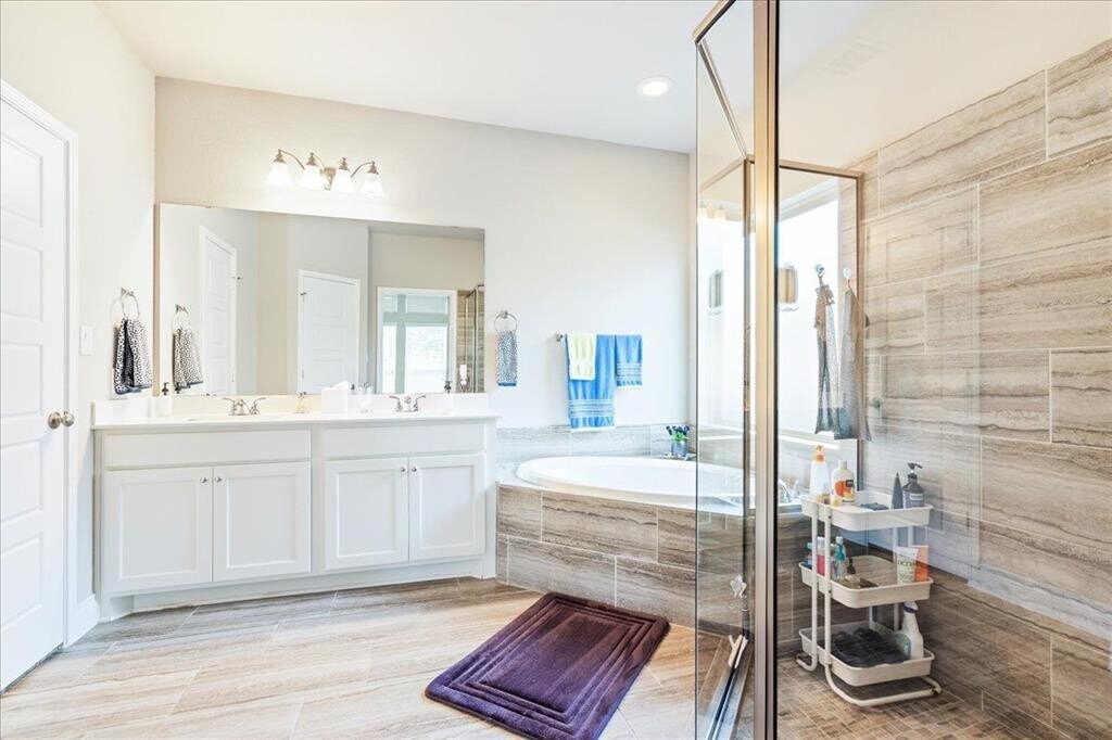Moe AlsharifBeautiful single story home in pristine condition. Fresh, bright, and open featuring a modern kitchen with two islands,stainless steel appliances, dedicated home office with double glass french doors, large primary suite, wood-like tilethroughout (except carpet in the bedrooms), tall ceilings, large windows, and many more details. Covered patio andtwo car garage. Enjoy the highly desirable community of Teravista with some of the best amenities in the area,multiple pools, trails, sports courts, public golf course, and elementary school a few blocks away. Tons of shopping anddining options in the area
