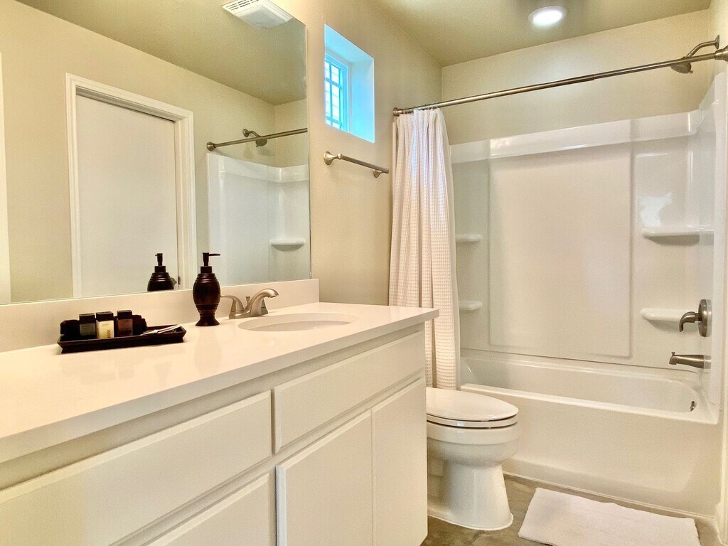 Vacant and ready to move in, this charming two-story home, built in 2018, offers a spacious open floor plan perfect for casual entertaining! The island kitchen is equipped with gorgeous quartz countertops, custom cabinets and stainless steel appliances - all overlooking the dining and living area. The large master bedroom with a double-vanity bath and walk-in closet is a perfect retreat! There are also two well-sized secondary bedrooms with a full bath upstairs. Abundant natural light throughout, modern light fixtures, neutral paint colors and beautifully finished concrete floors, all bring the country-chic feel to Liberty Hill. Expand your space with an additional flex room upstairs, two-car attached garage and tons of storage space! Walk to Wetzel Water Park at the corner of Munro St and Hwy 332. Experience the Liberty Hill lifestyle in this unique community of brand new garden homes! One SMALL Pet allowed. Washer and Dryer can stay but are not maintained by the owner.