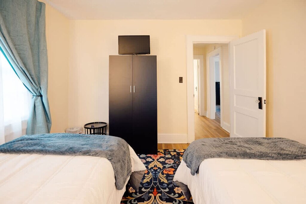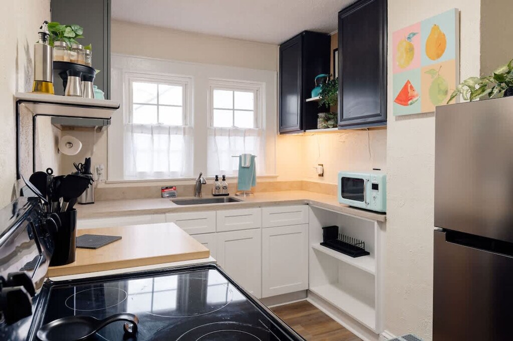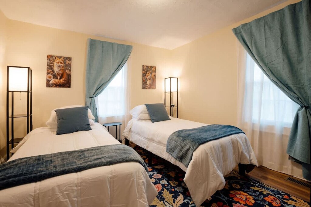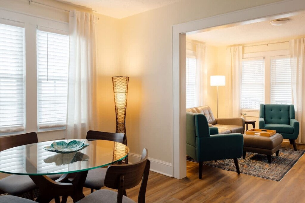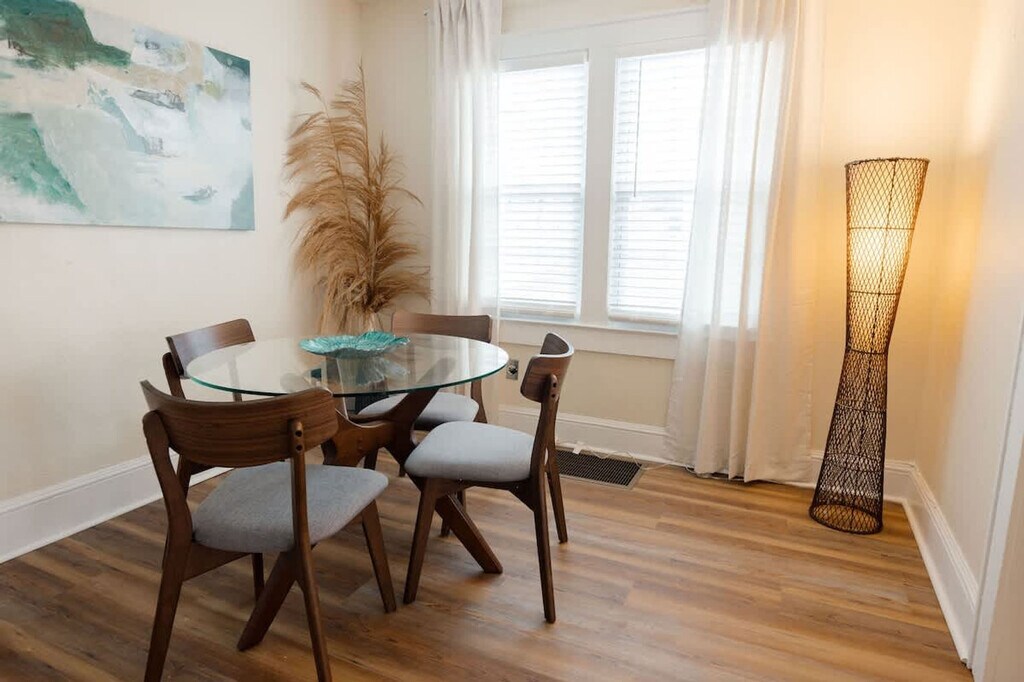 Feel at home in this charming 2-bedroom, 1-bath home near downtown Johnson City. This cozy apartment, nestled beside the serene green space of Founder's Park, provides a quiet retreat while keeping you just steps from the energy of downtown. Inside, the space is thoughtfully designed and ideal for both relaxation and remote work. Natural light fills the living area, creating a warm and welcoming atmosphere. The fully equipped kitchen makes it easy to prepare meals. Located in the heart of downtown Johnson City, this apartment offers the perfect balance of vibrant city access and peaceful retreat. Step outside to enjoy downtown events, local dining favorites, and unique shops, then return home to unwind in a quiet, tucked-away setting removed from the city noise. Founder's Park is directly next to the apartment, perfect for morning walks or evening unwinding. Quiet hours are observed between 9 pm and 7 am. [SI]