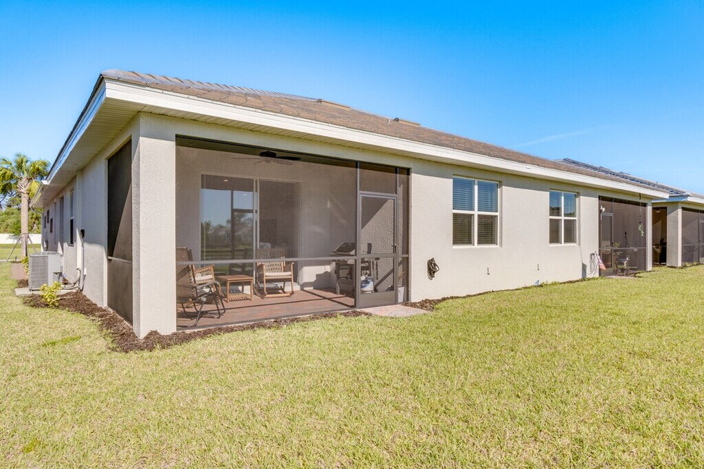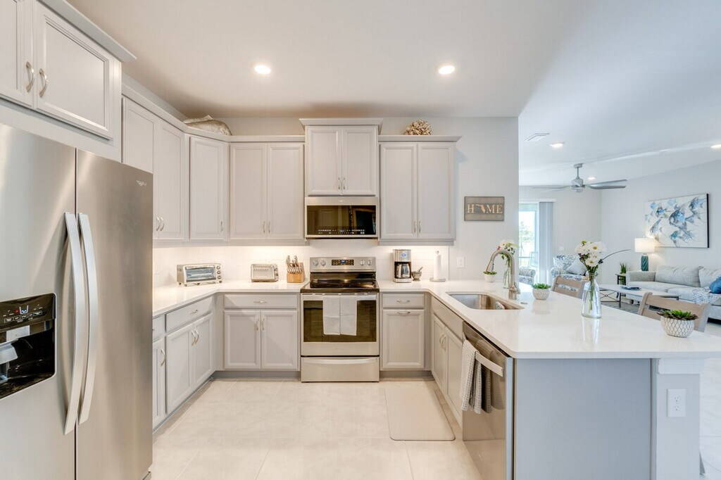 Feel at home in this 2-bedroom, 2-bath villa in Venice. This single-story villa requires one step to enter. This villa features a full kitchen, screened-in patio, and access to community amenities, including an outdoor pool and a fitness center. The kitchen is equipped with stainless steel appliances, including a dishwasher, cooking basics, dishware, flatware, a drip coffee maker, microwave, air fryer, toaster, and toaster oven. Other amenities include a flat-screen TV, dining table, breakfast bar, walk-in shower, shower/tub combo, new furniture, upgraded beds, ceiling fans, complimentary toiletries, a hair dryer, washer/dryer, hangers, an iron and board, linens and towels, trash bags, and paper towels. Enjoy outdoor seating, a yard, and pond access. This property is pet friendly with a $50 fee, plus fees and taxes. Enjoy a scenic hike at Warm Mineral Springs Hike, catch some rays at Venice Beach, or stay home and grill out on the patio before taking a dip in the pool. Venice Beach is approximately 6 miles away. Overnight street parking is prohibited. Guests must be at least 25 years old to book. No smoking, events, parties, or large gatherings are allowed. This property may not be suitable for young children due to the unfenced pond area. Additional fees and taxes may apply, and a photo ID may be required upon check-in. Includes a laptop-friendly workspace and free Wi-Fi. [SI]