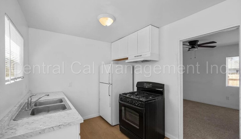 This well-maintained 2 Bedroom,1 Bath Home has been freshly painted and features new carpet flooring throughout. Kitchen includes new cabinets, new countertops, a gas oven/range, a fridge and new luxury vinyl plank flooring. Other amenities include a tankless water heater, new windows, new blinds, washer and dryer hookups and a new fence. Owner pays for sewer and trash. Applications are now being accepted. This will go fast! One Year Lease. GARAGE USAGE WILL NOT BE INCLUDED. Visit our website (centralcalmgmtdotcom) to apply. Rental Requirement Guidelines - To View Property -
