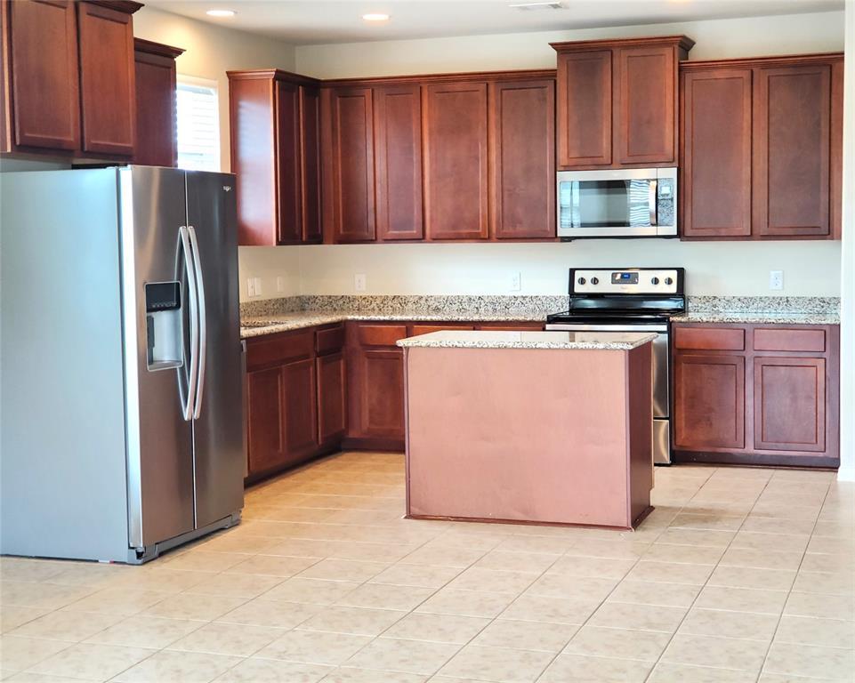Light, Bright & Open Floorplan! 3 bedrooms, 2 baths, open living room, plus an office! Hard Tile! Fresh Paint & New Carpet Summer 2025. Master bedroom with dual vanities, a walk-in shower, & a spacious walk-in closet. Kitchen features stainless steel appliances, granite countertops, and a central island. Large covered front porch and a private back patio. Mature landscaping and automatic sprinklers in the front yard offer both charm and low-maintenance care. Located on a corner lot! Located in the Village at Leander Station neighborhood, this home offers convenient access to Hwy 183A, Old 183, and Hwy 2243 for easy commutes to Austin, Cedar Park, Round Rock, and Georgetown. Just minutes to the Leander Metro Rail Station, H-E-B Plus, ACC campus, and local favorites like 5th Element Brewery and Old Town Leander.