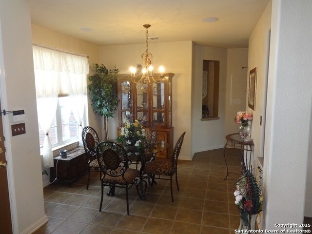 Welcome to your new spacious 4 Bedroom home with plenty of room for family, friends, work from home or entertaining. Tucked into a culdesac, this home has beautiful finishes throughout that make it feel like home. custom ceramic entryway, family room & kitchen/breakfast area and upgraded flooring throughout. Dual living spaces in the front of the home along with a spacious family room right in the heart of the home. Large windows shed tons of natural light. Custom surround sound is pre-wired in for your music, gaming or movie enjoyment. The spacious kitchen has a huge center island with granite counter top and space for stools makes it a breakfast bar for the family. The kitchen boasts gourmet range, with above-range microwave, Corian countertops, plenty of space for your dining table as well, and a huge walk in pantry. The bright and spacious master suite is luxurious with whirlpool garden tub, separate shower and two vanities, walk-in closet & ceiling fan. There's plenty of work space in the laundry/mud room, making chores so much easier. The back yard has a covered porch for outdoor enjoyment & sprinkler system for stress-free lawn care. There is also a small garden shed for easy organizing. Your new home is conveniently located to Randolph, Ft. Sam & all of the local amenities in Cibolo Tx. Must see and imagine your own creative touch. Welcome home!