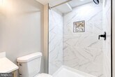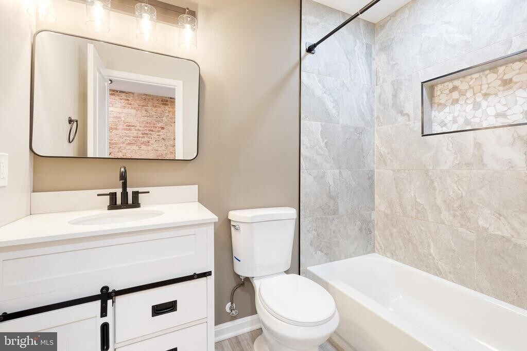 Ideally located within walking distance of Johns Hopkins Hospital, acclaimed neighborhood restaurants, and the open green spaces of Patterson Park, this beautifully renovated home offers the perfect blend of style, comfort, and convenience. From the moment you step inside, you’re greeted by gleaming hardwood floors and a sun-filled living room enhanced by classic Baltimore exposed brick and thoughtfully placed recessed lighting, creating a warm and inviting atmosphere that flows effortlessly into the dining area and show-stopping modern kitchen. Designed for both everyday living and entertaining, the main level features a chef-inspired kitchen complete with crisp white shaker cabinetry, stainless steel appliances, quartz countertops, a striking designer tile backsplash, and a spacious center island with bar seating ideal for casual meals or gathering with guests. The upper level hosts a serene primary bedroom with ample closet space and a second bedroom with access to a charming balcony, perfect for morning coffee or evening relaxation, while a spa-like remodeled bathroom showcases custom tile work and on-trend matte black fixtures. A full-sized washer and dryer on this level add everyday convenience. Downstairs, the fully finished lower level offers a true third bedroom, a flexible recreation space that can easily serve as a home office, den, or fitness area, and a full bathroom, creating an ideal private retreat for guests or extended living. Completing the home is an inviting outdoor patio perfect for summer barbecues and entertaining, along with a grassy area that provides a welcoming space for pets to play and unwind.