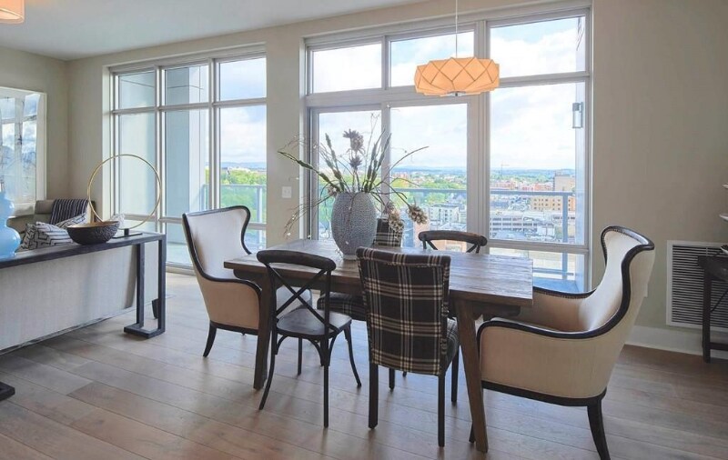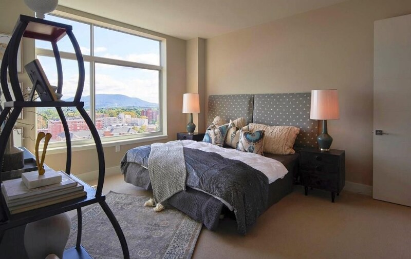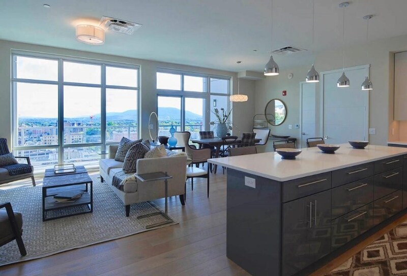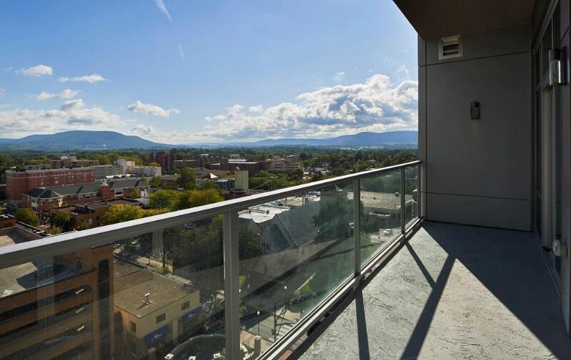 Property Id: 1949821 This unique one-bedroom, one-and-a-half-bath corner condo blends elevated design with breathtaking views of downtown, the Penn State campus, and Mt. Nittany. From sunrise to sunset, enjoy a dynamic cityscape and peaceful mountain horizon from your covered private terrace. Inside, the open layout is highlighted by 10-foot ceilings, floor-to-ceiling windows, and engineered white oak flooring that adds warmth and continuity throughout the space. The European-inspired kitchen features Quartz countertops, Bosch stainless appliances, custom soft-close cabinetry, and elegant pendant lighting, perfect for both everyday cooking and entertaining. The spacious living and dining areas offer flexible design potential, while the serene bedroom suite provides comfort and privacy. Additional perks include access to a rooftop patio, private entrance, dedicated parking, and Hyatt Health Club privileges.