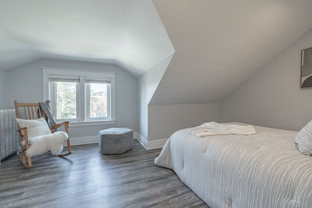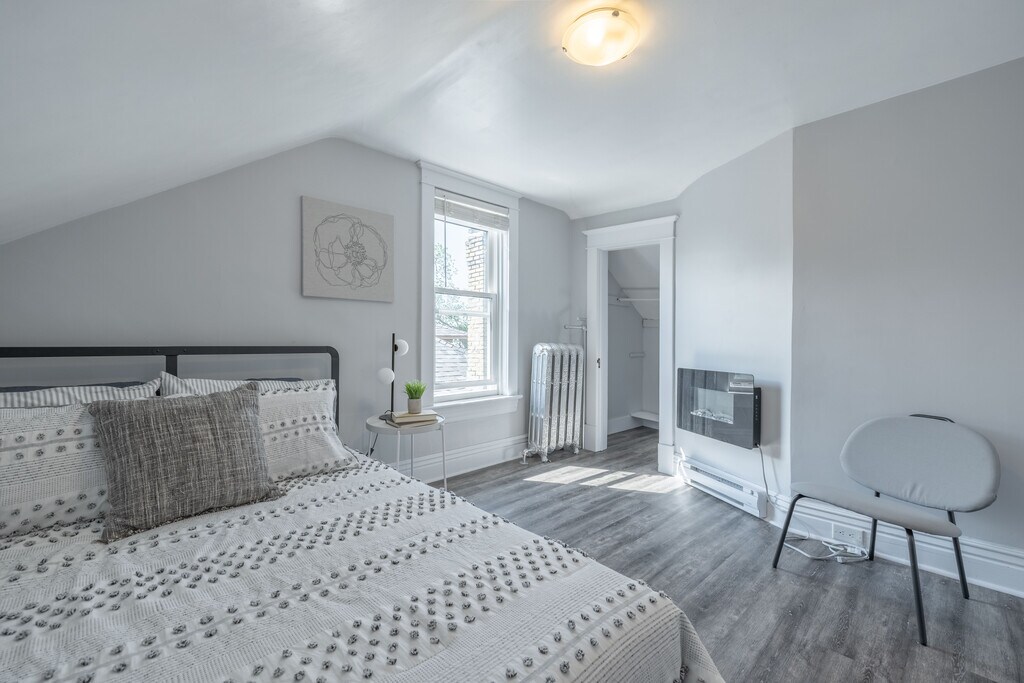 Charming Wollesly house with loads of space. Massive living room, dining room and kitchen with a lovely bright sunroom. Unit has separate thermostat so you can control your own heat (price included in rent). The bathroom has a magnificent large clawfoot tub and a separate water closet. Top floor has two beautiful bedrooms, an office nook and additional baseboards. The sunroom could easily be turned into a third bedroom to make the house more affordable for students. Very walkable neighbourhood with great access to bus routes, the U of W and misercordia hospital.