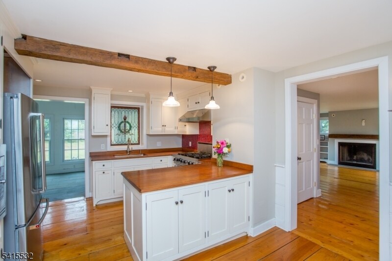 Privacy and serenity enfold this fully renovated, historic (c.1850s) stone home on three acres, surrounded by preserved green space and affording unparalleled pastoral views. Inside, a 2006 addition and renovation updated the home while preserving its unique charm. A stylish eat-in kitchen centers the primary level and features custom cabinetry and high end appliances. Cypress floors flows into the original wide plank flooring in the dining room. In the living room, built-ins frame a fireplace. The primary suite spans the entire third level. The Delaware River and Bulls Island State Park is only moments away.