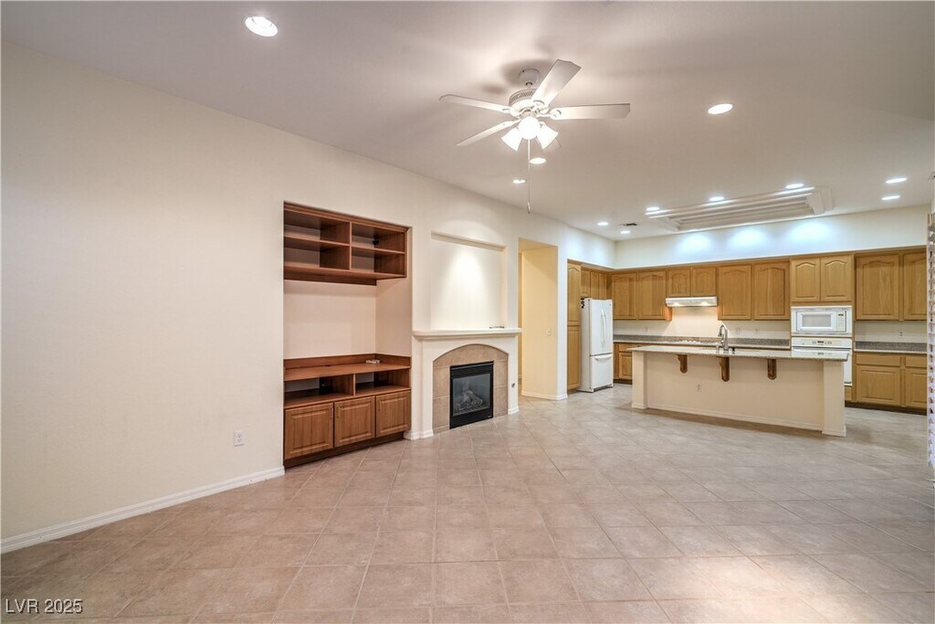 Spectacular Anthem Floorplan with Pool & Spa on Oversized Corner Lot in the premier 55+ age restricted community of Sun City Anthem! Home features approximately 3175 SqFt of living space w/4 Beds, 3 Baths, & oversized 2 Car Garage. Open Floorplan w/Spacious Living Room/Dining Room Combo w/Wet Bar, Ceiling Fan, and Large Radius Windows. Island Kitchen w/ Granite Countertops, Breakfast Bar, Nook, Pantry, Recessed Lighting, B/I Oven, Gas Cooktop, Microwave, & Dishwasher. Separate Family Room w/ Gas FP, Ceiling Fan, & Built-Ins. Owner's Suite with 2 W/I Closets with Organizers, Sitting Area, Custom Built In Cabinets & Drawers, & Bath w/Separate Raised Vanities w/Sinks, Garden Tub, & Shower. Junior Suite w/Ceiling Fan and Bath, plus 2 Secondary Bedrooms w/Ceiling Fans. Neutral Two Tone Paint, Plantation Shutters, Alarm System, Tile on Diagonal, Laundry Room w/Utility Sink & Cabinets, Water Conditioner, Courtyard Entry, Rear Yard w/Covered Patio, Sparkling Pool & Spa, & Mountain views!
