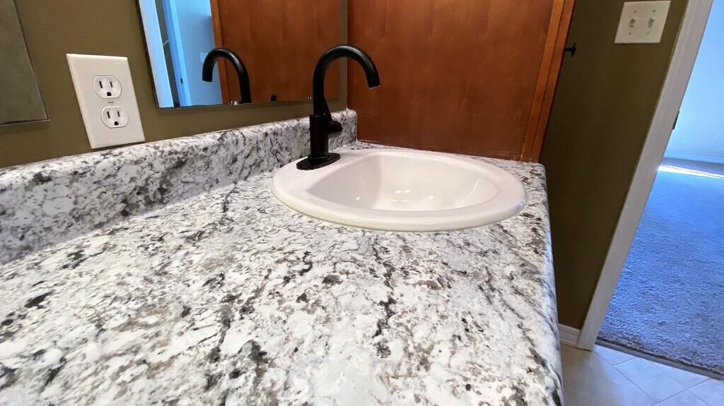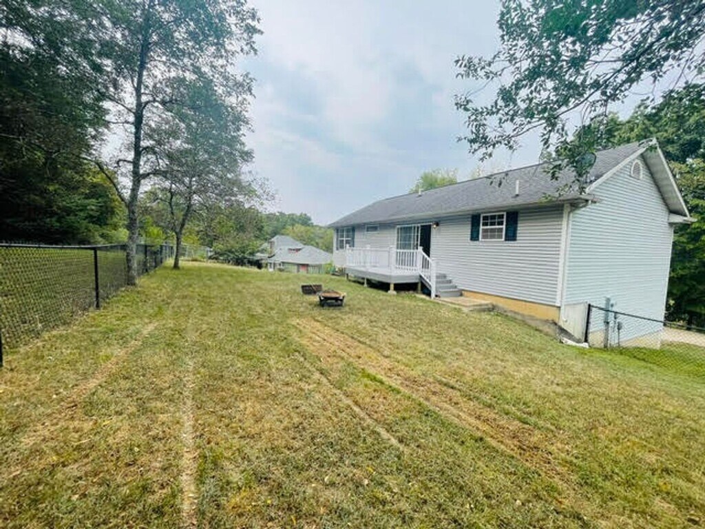 Beautiful 3 bedroom, 2 bathroom hilltop split level home with a two car garage, off of Highway 17 in Waynesville. Upstairs you'll see the kitchen which boasts bright updated countertops, plentiful amount of cabinet storage, updated stainless steel appliances, and a modernized flexible spray nozzle sink. The kitchen flows into the living room with a large opening and an open floorplan feel. Once in the living room you will notice the large comfortable carpeted space with lots of natural light, this space will be great for entertaining. There is a spacious dining room with quick access to the back deck and fenced in backyard thorough the large sliding glass doors. On the right hand side there are two spacious guest bedrooms with an abundance of natural light and mirrored closets. The upstairs guest bathroom has a sleek porcelain sink and tiled bathtub and stained glass window. Located downstairs, the massive master bedroom gives you the privacy you need and it's large enough to be utilized as a family room and/or theatre room. The master bedroom is finished with a broad walk-in closet and an on-suite that features dual sinks and a tiled bathtub. This home provides everything you need, while being close to Fort Leonard Wood and downtown Waynesville. Square footage is approximate. Additional fees may apply. Pet Policy: Home is pet friendly with a $350 refundable pet deposit per pet, maximum 3 pets.
